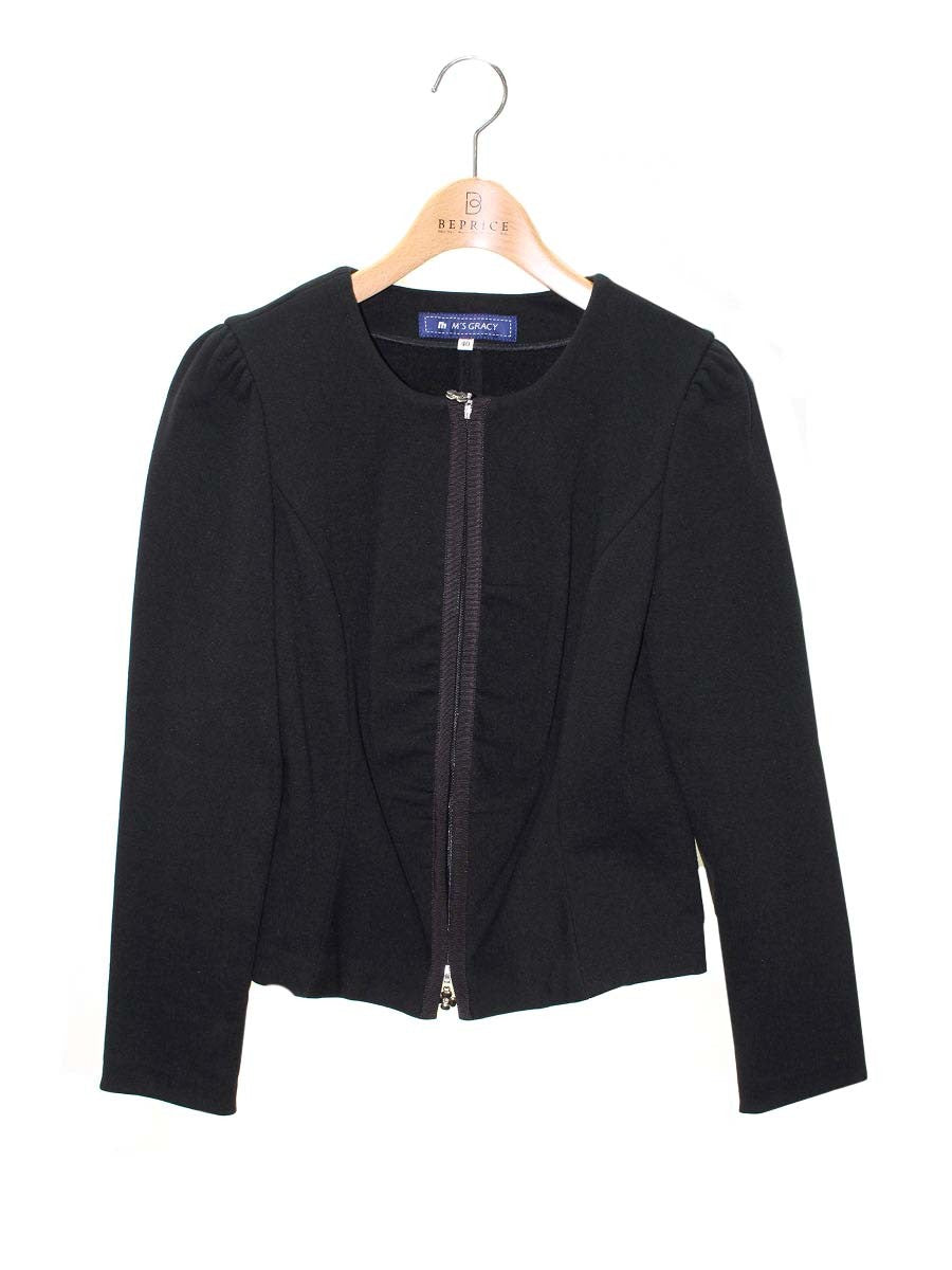 エムズグレイシー 624522 ジャケット 40 ブラック カメリアジップ ボンディング ノーカラー IT02R57G0LL0