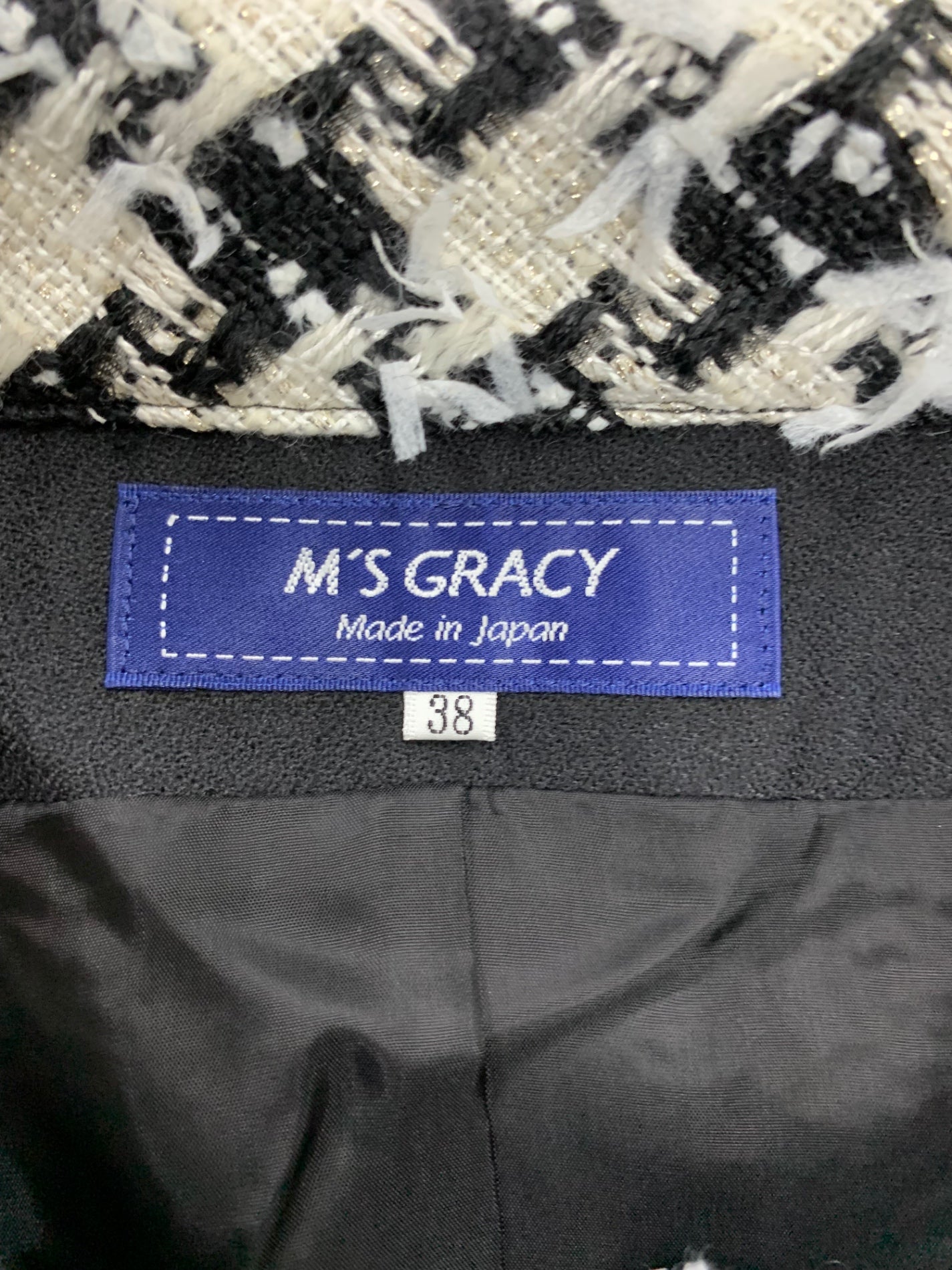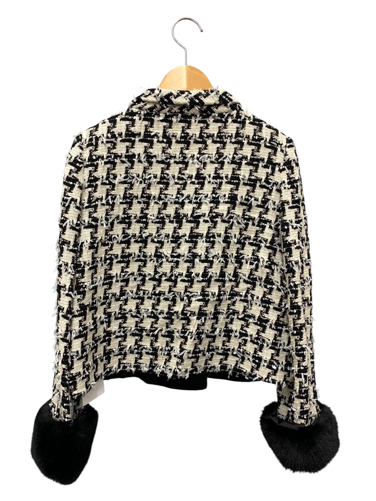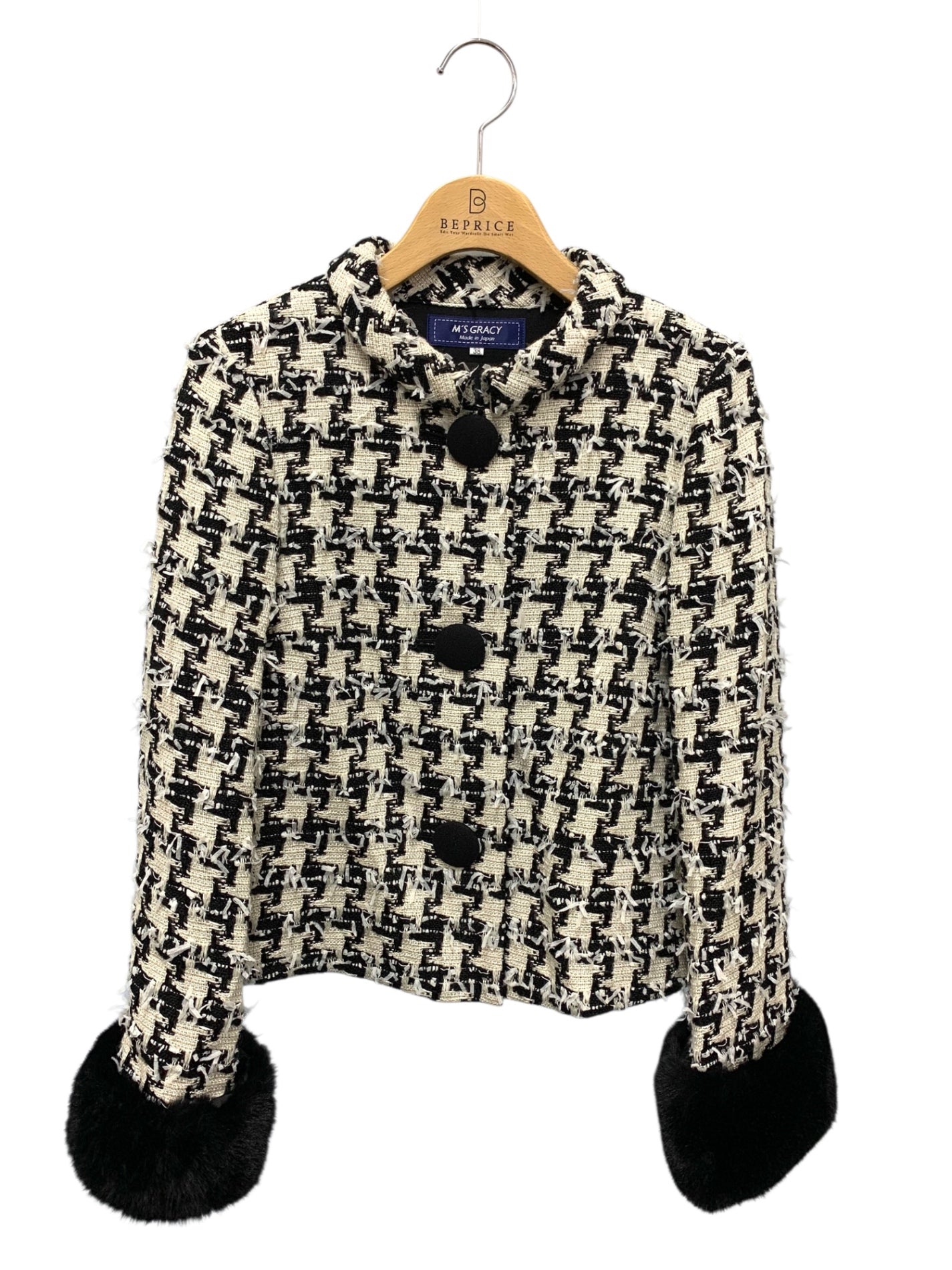 エムズグレイシー 914528 ジャケット 38 ホワイト ツイード ファーカフス付き IT0GRQSB5J5G