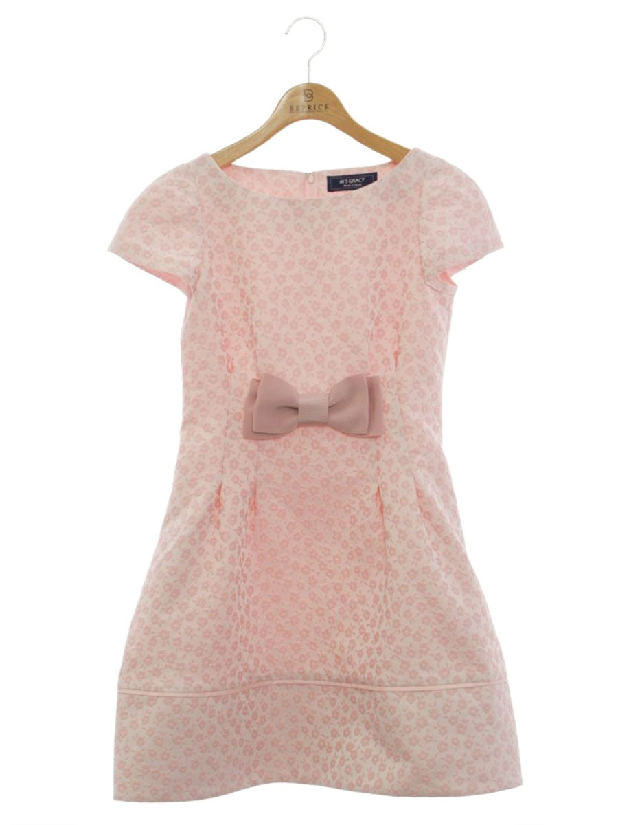エムズグレイシー 011134 ワンピース 36 ピンク フラワーモチーフ エンボス リボン IT1NPWL6BVV6
