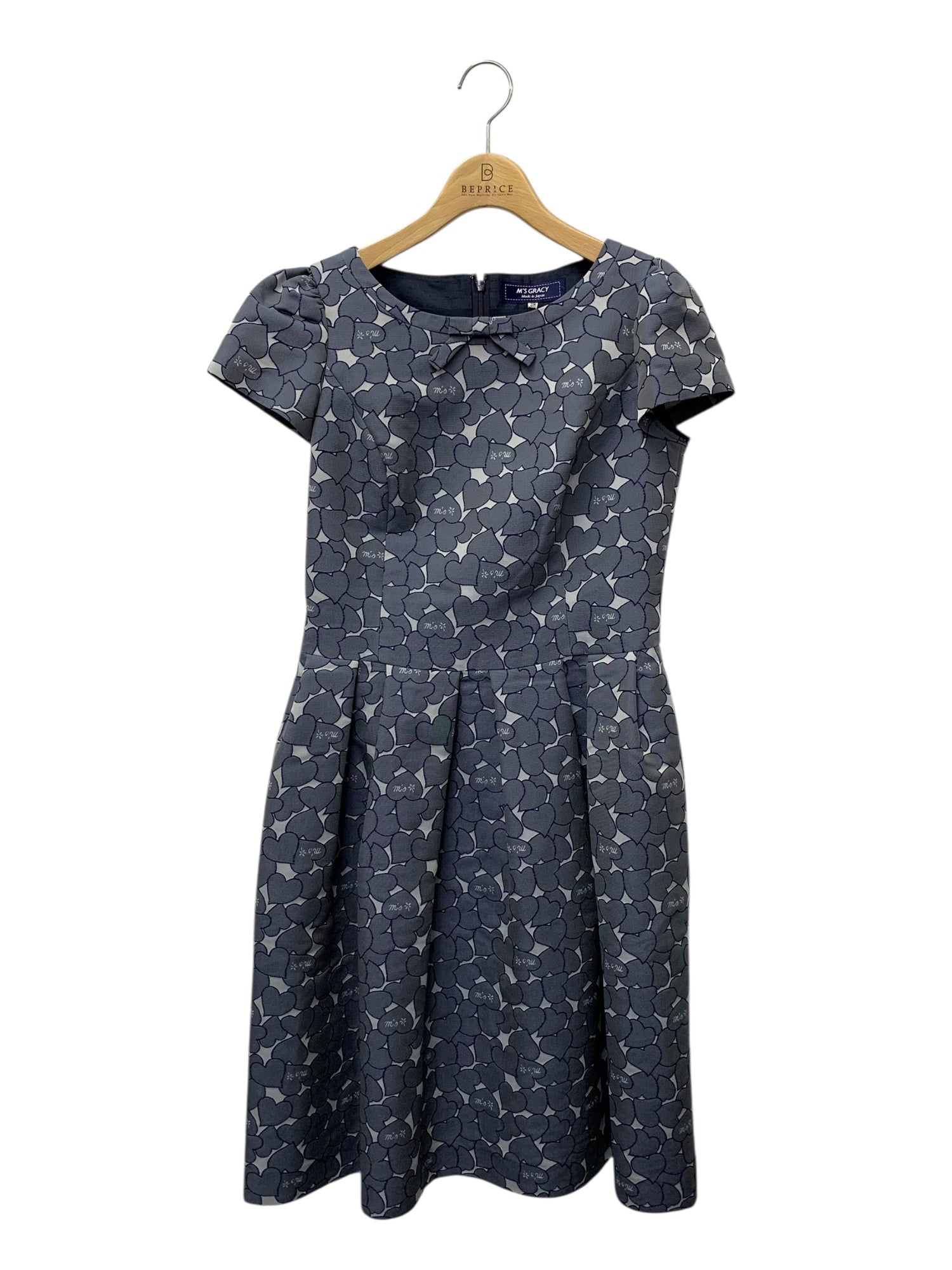 エムズグレイシー 111104 ワンピース 38 ブルー ハートモチーフ ロゴ リボン フレア IT2770LPJMT8