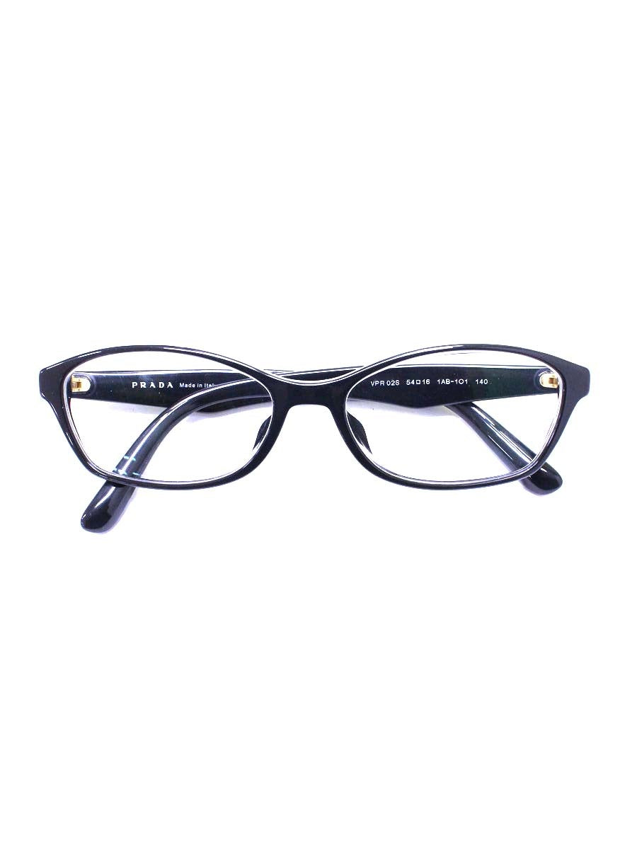 プラダ VPR02S メガネ ブラック/ゴールド ロゴ セルフレーム IT2IQJ705XID