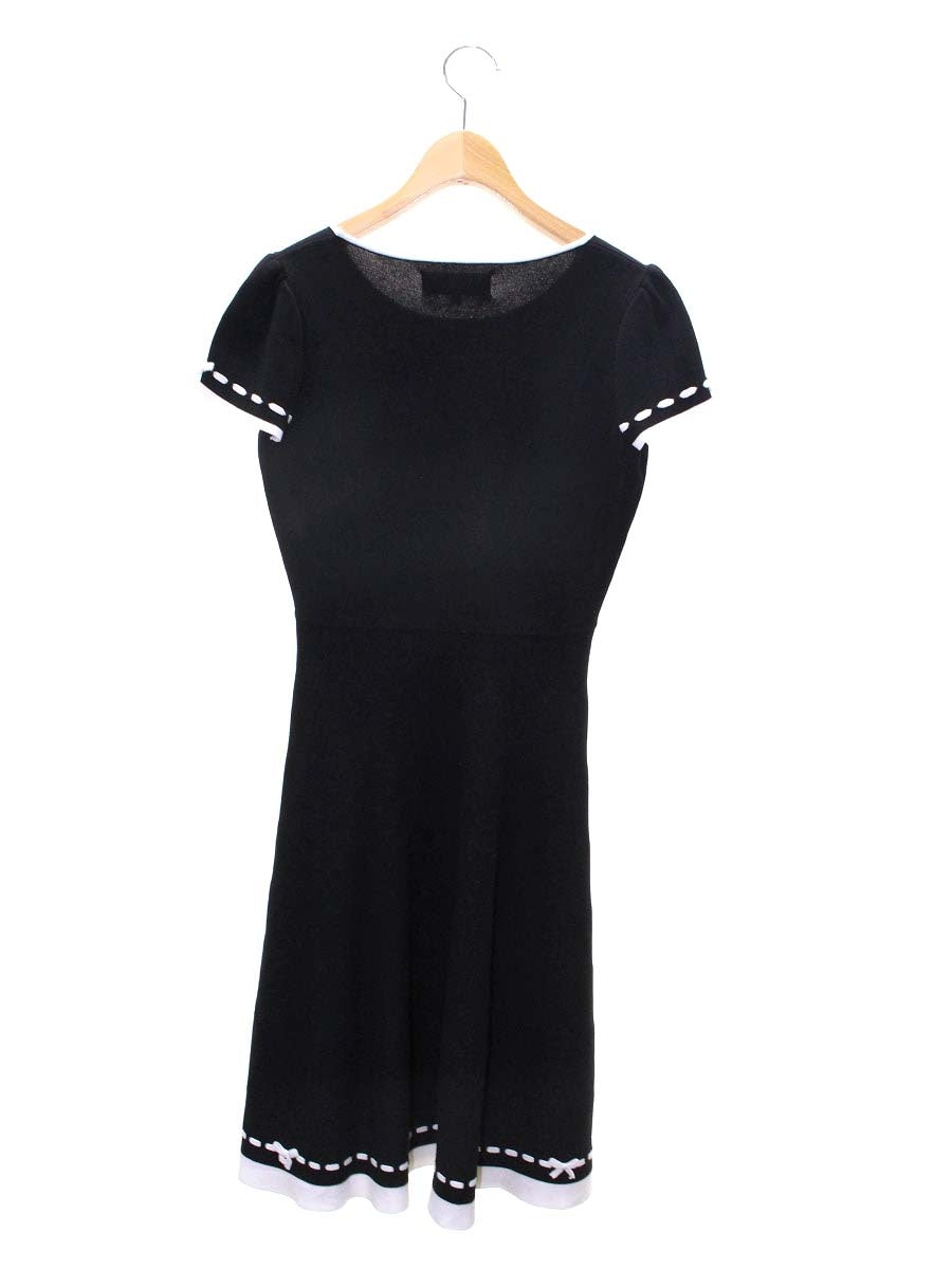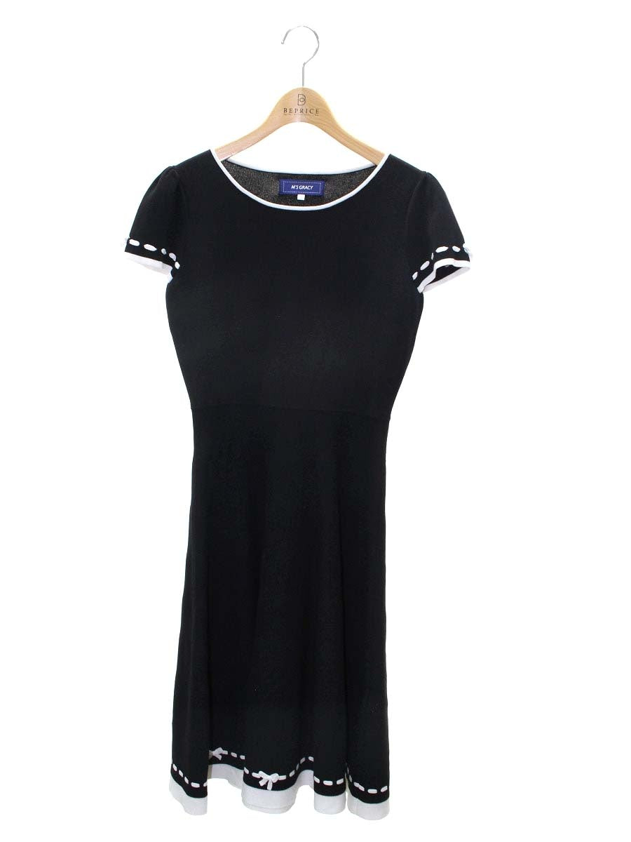 エムズグレイシー 118307 ワンピース 36 ブラック ニット ステッチ 半袖 IT2KF65XINZ8