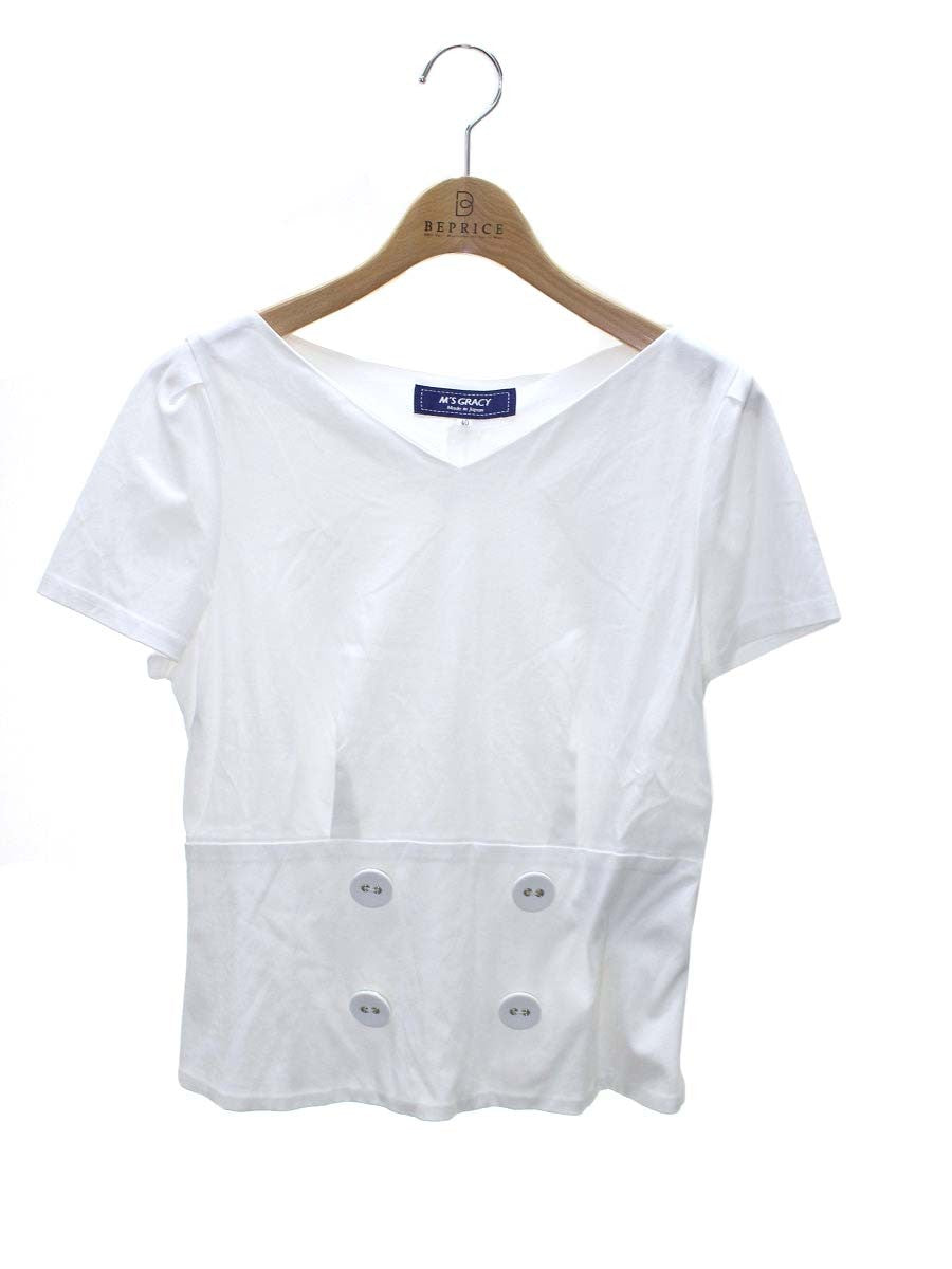 エムズグレイシー 015347 トップス 40 ホワイト Vネック ボタン IT2UCAZD68P2 【SALE】
