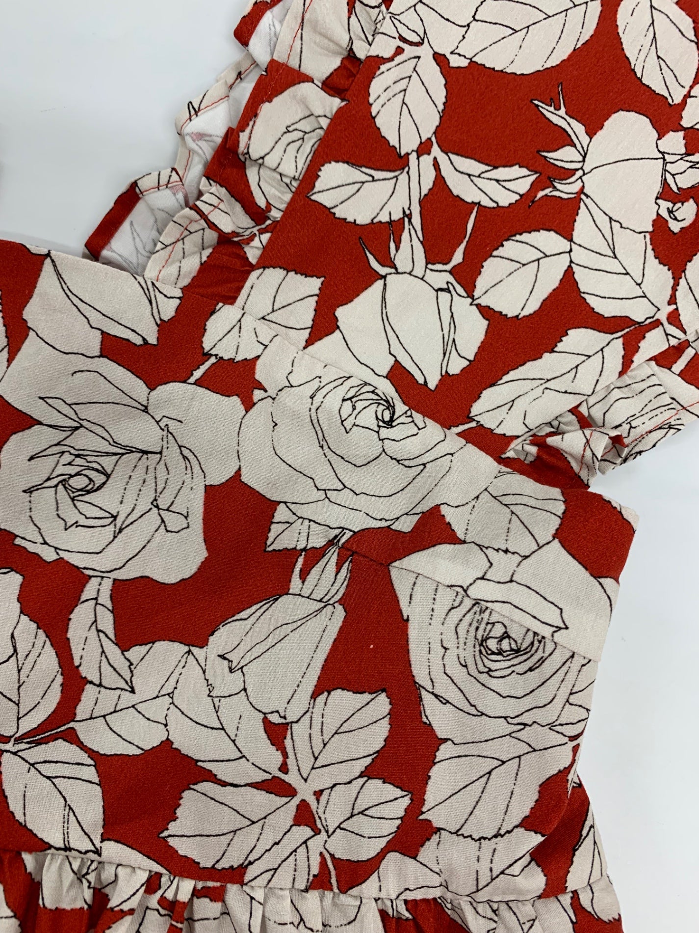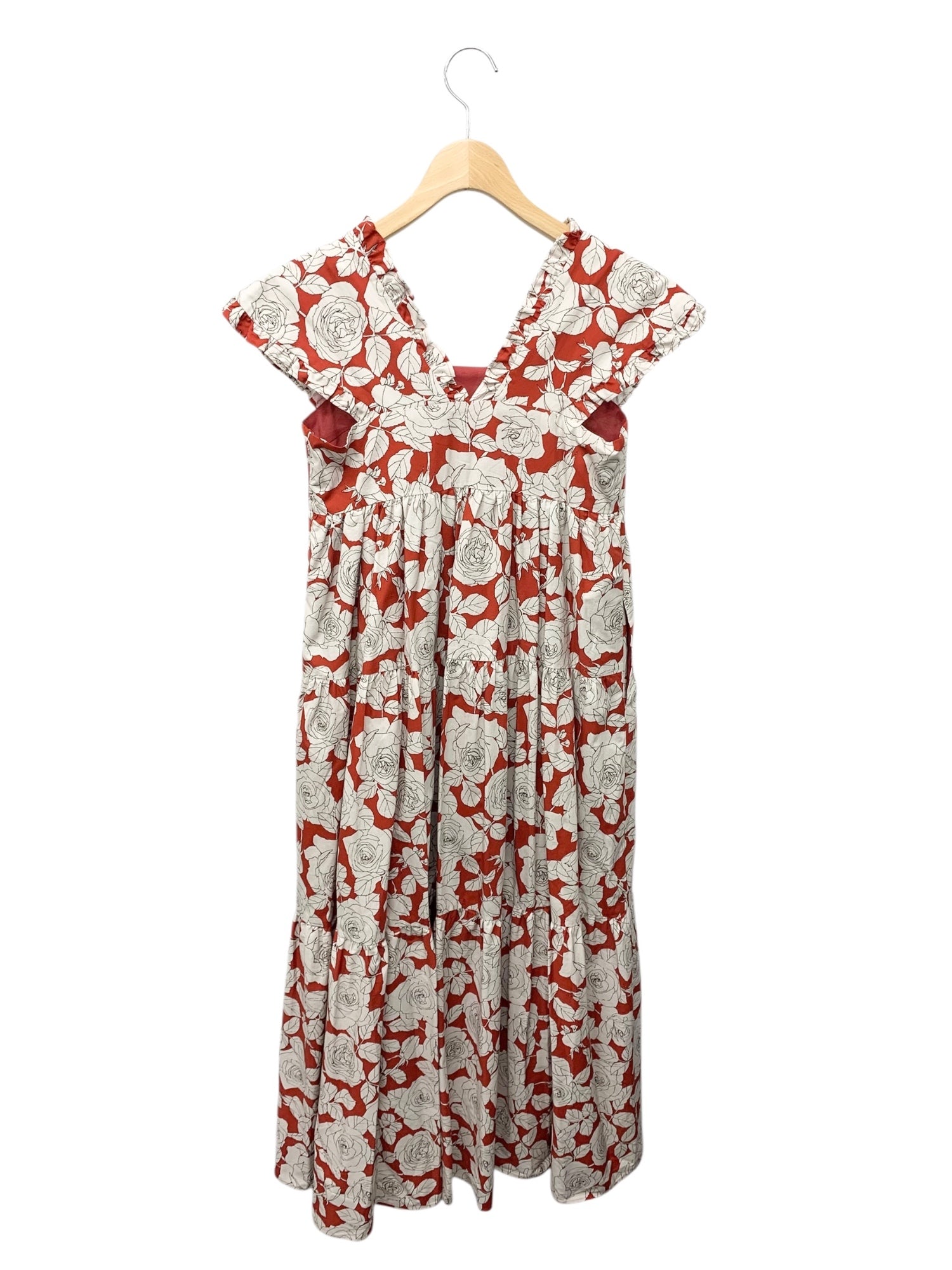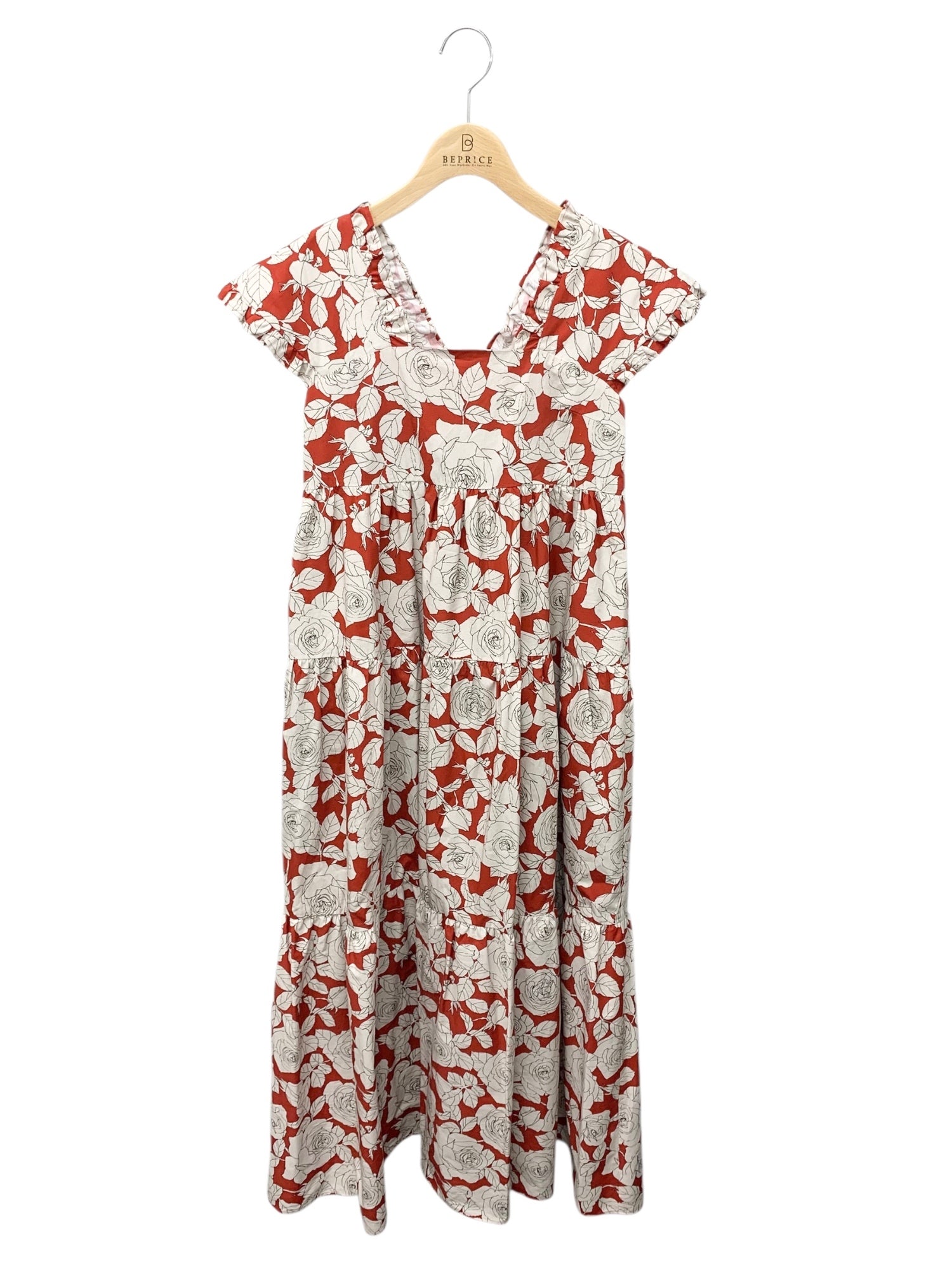 セブンテンバイミホカワヒト 3S508 ワンピース S レッド ローズ柄 フラワーモチーフ フレア IT35HCPS9RE2