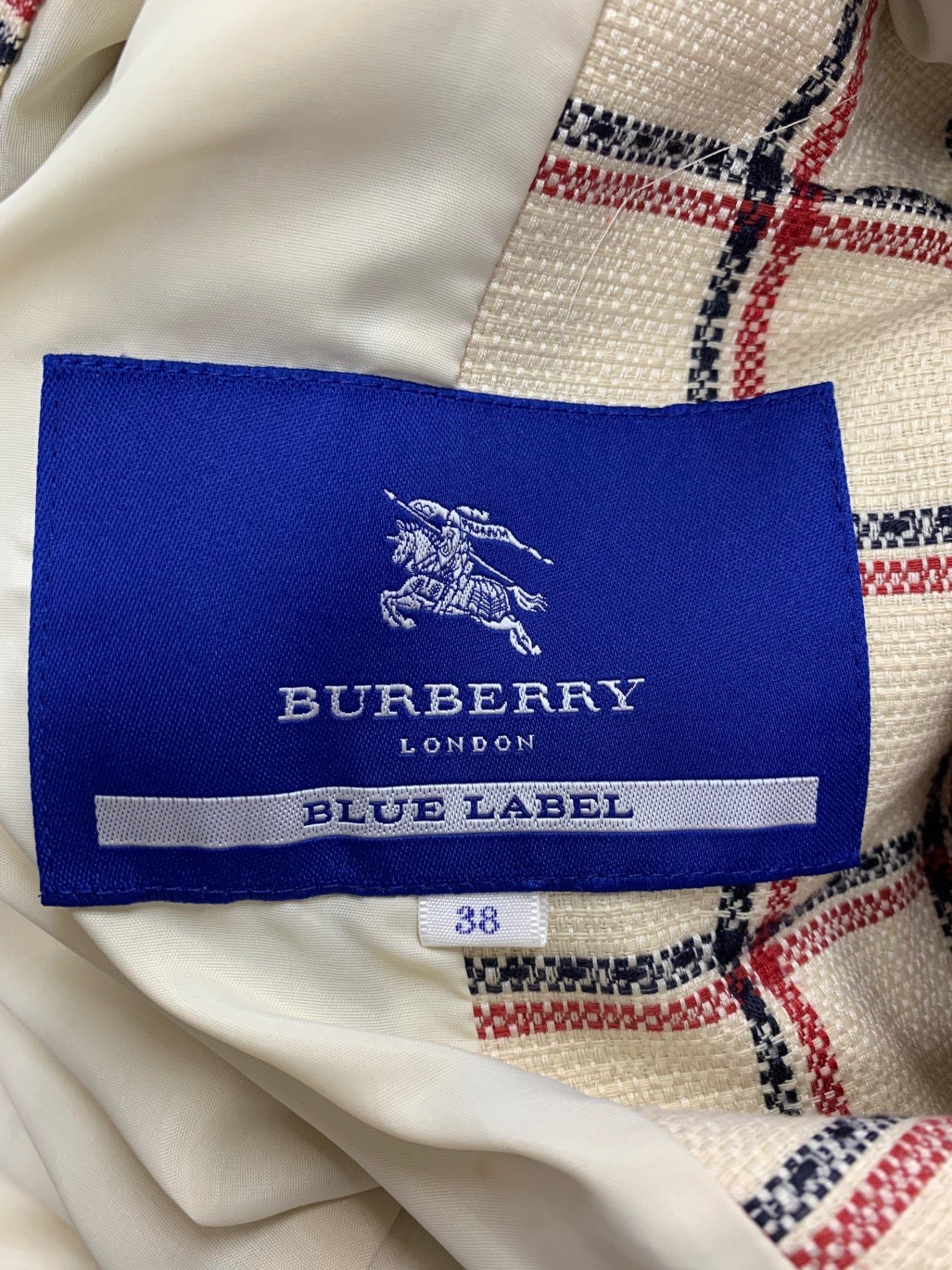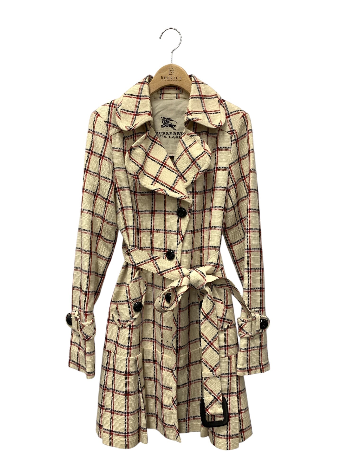 バーバリーブルーレーベル E1A22-544-03 コート 38 アイボリー チェック コットン IT3CLFX1WKK8