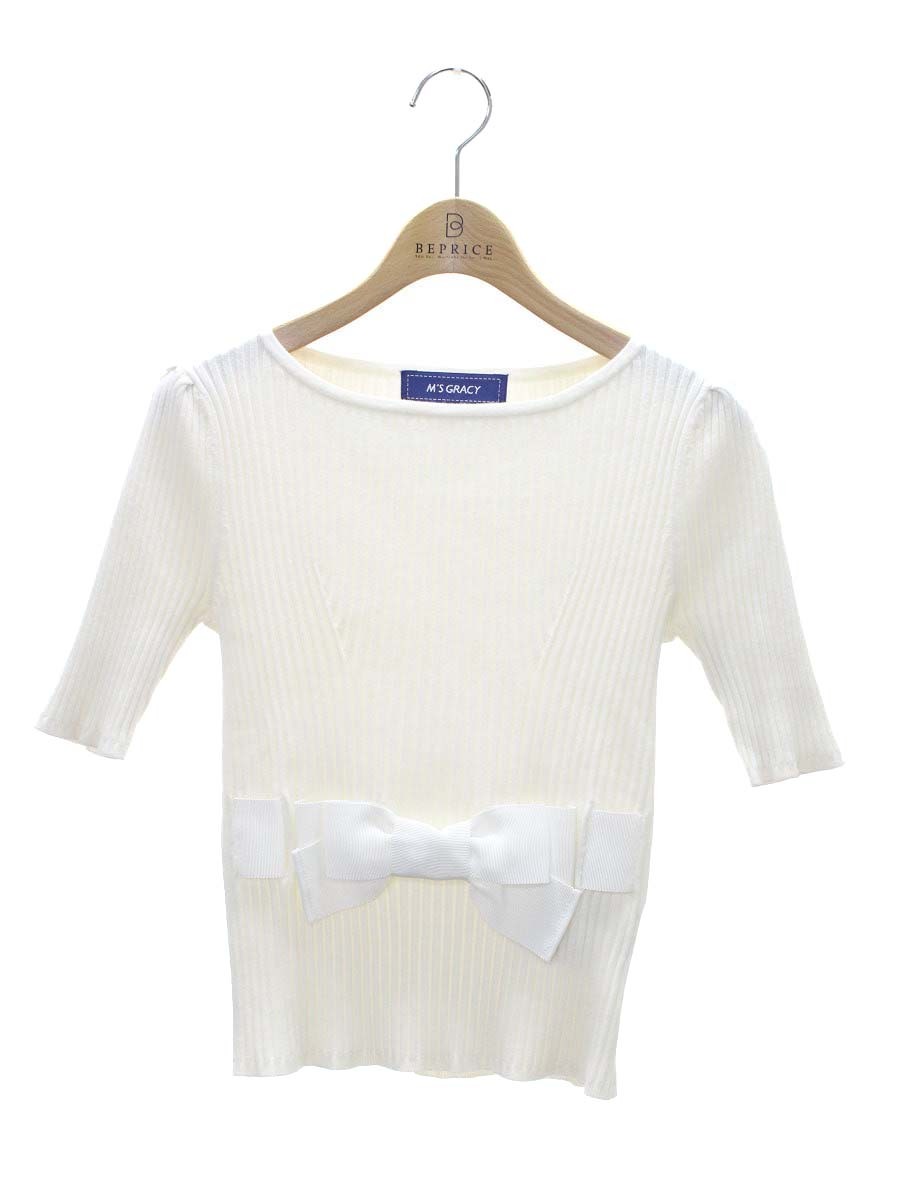 エムズグレイシー 018518 セーター トップス 38 ホワイト リボン リブニット IT3GKQPTJWJ6