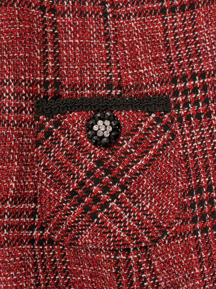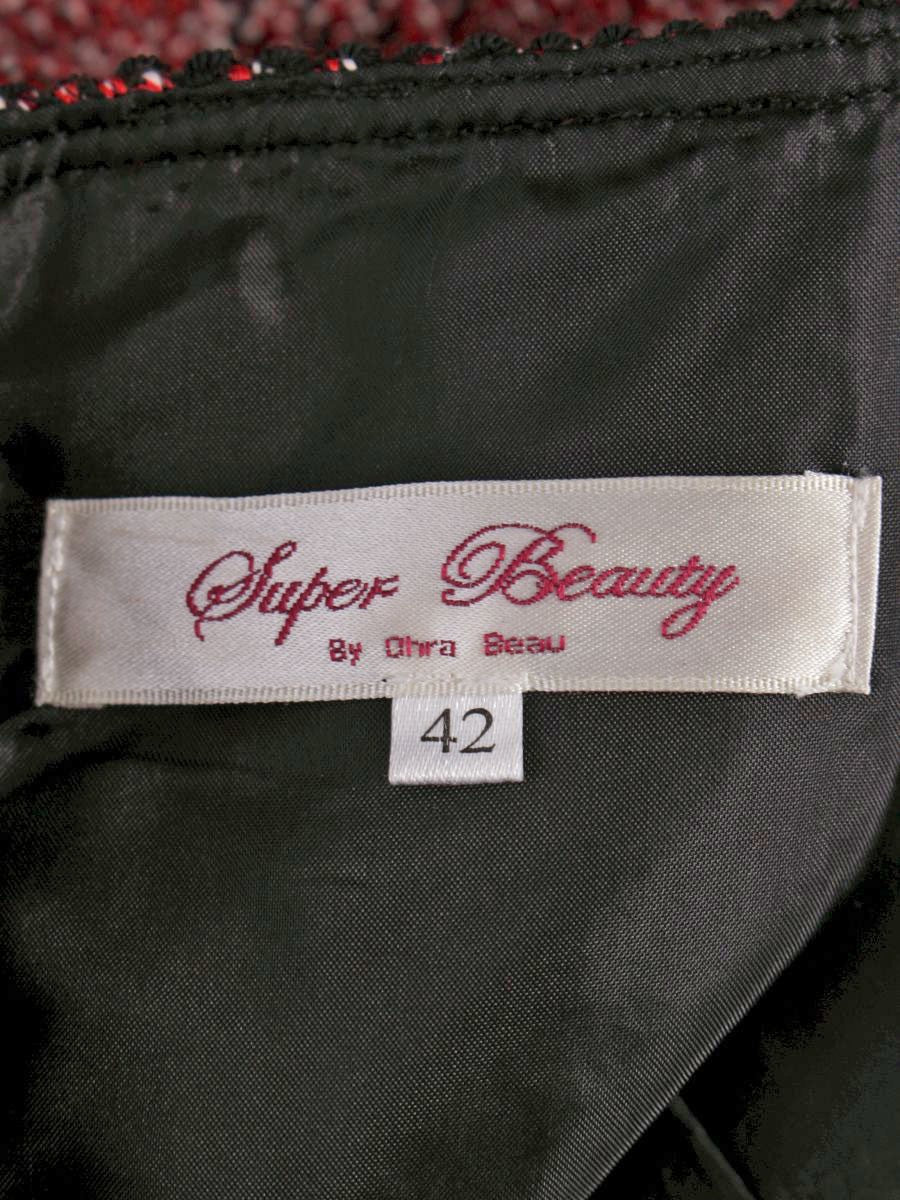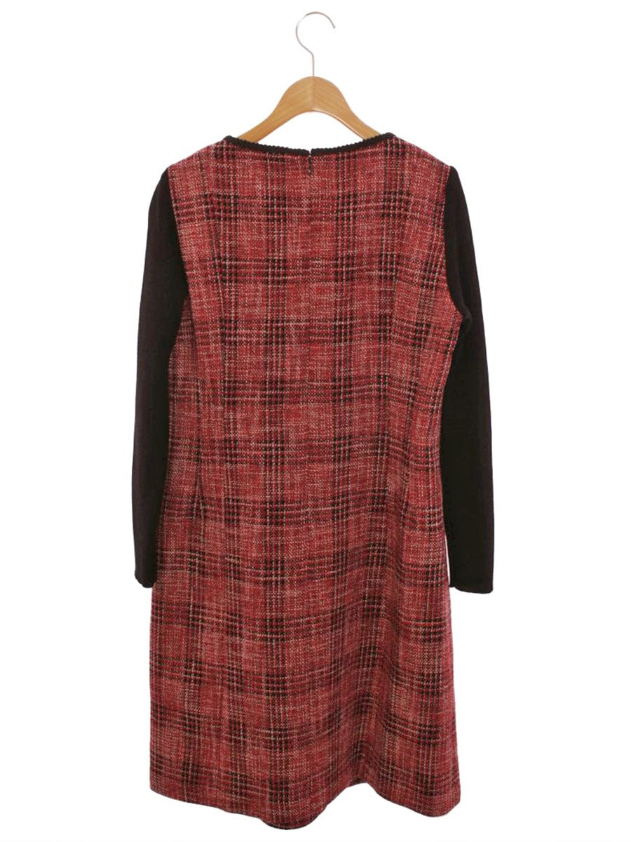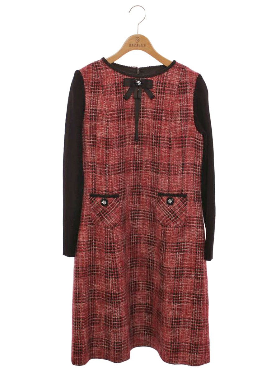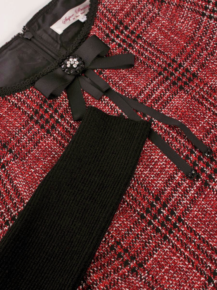 スーパービューティー ワンピース 42 レッド チェック柄 ビジュー リボン 袖ニット IT40FXXAAKU4 【SALE】