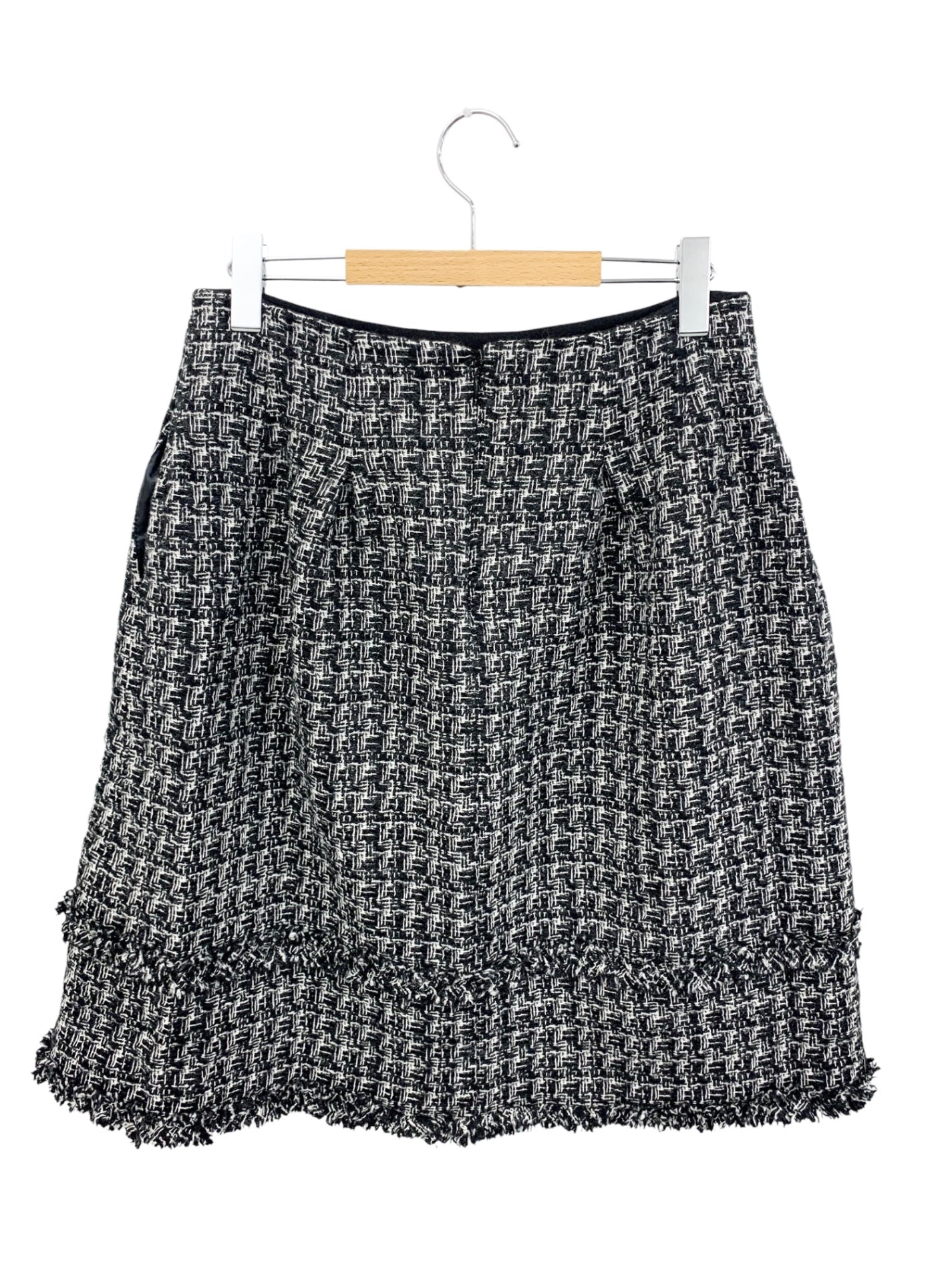 エムズグレイシー 317623 スカート 40 ブラック フリンジ ウール ツィード ラメ IT421OD0K0QI 【SALE】