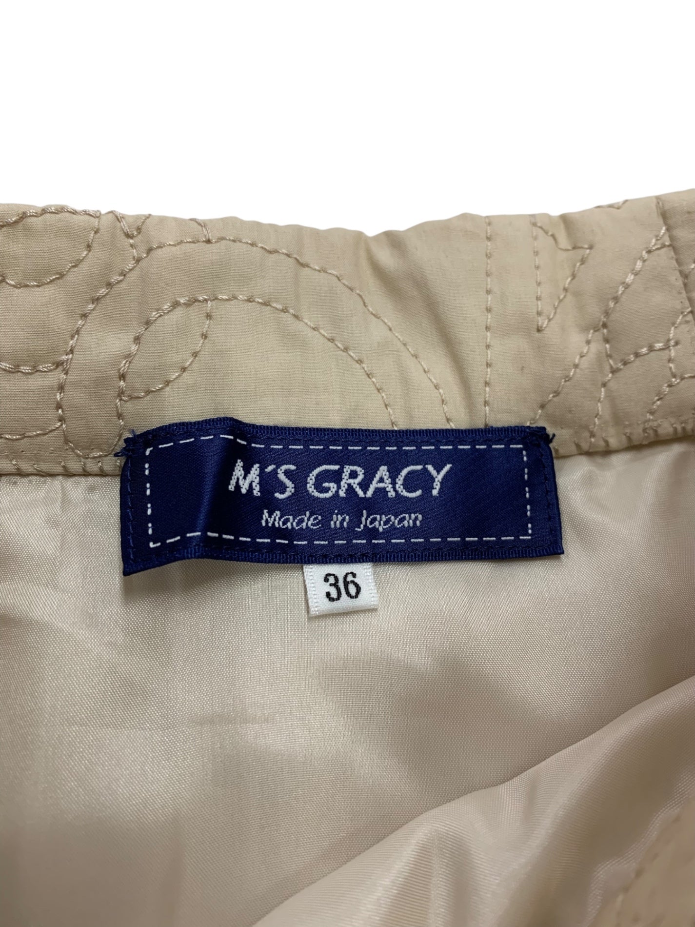 エムズグレイシー 517119 スカート 36 ベージュ カメリア ロゴ 刺繍 フレア IT43GXTK44RK
