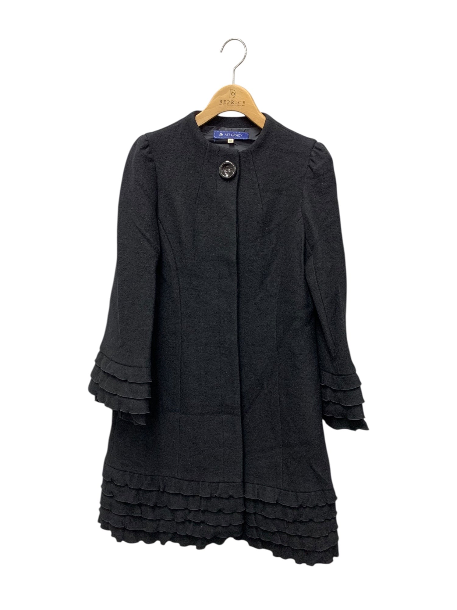 エムズグレイシー 929701 コート 38 ブラック ウール フリル ティアード IT4B4TO2VFAW 【SALE】