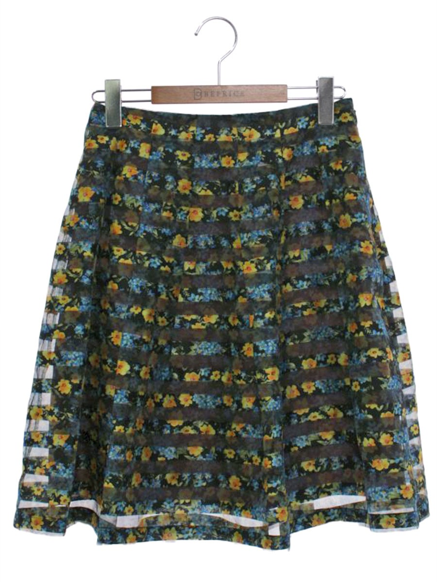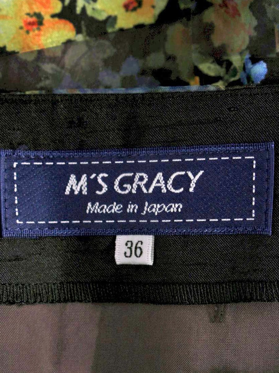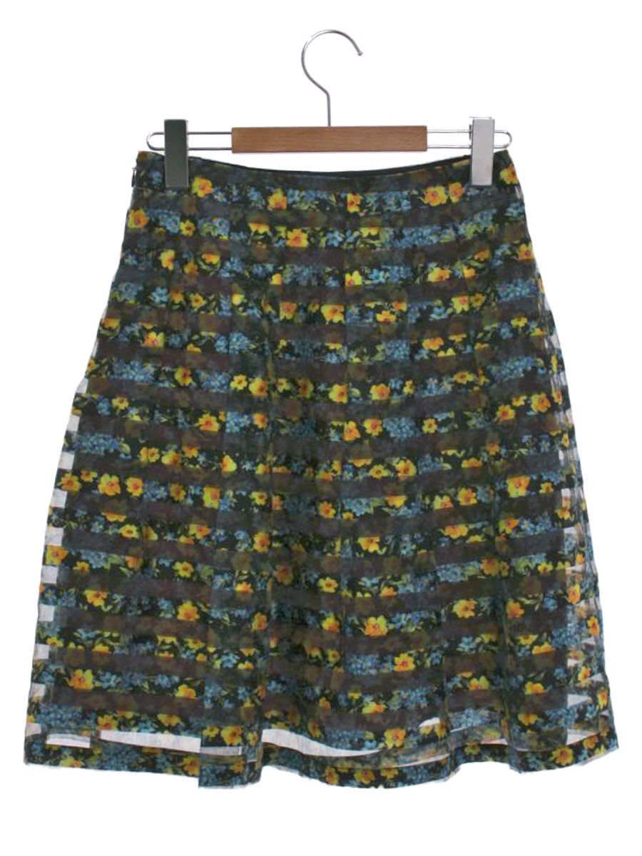 エムズグレイシー 917130 スカート 36 ブラック/マルチカラー オーガンジー フラワーモチーフ IT4HBDD3PNFS 【SALE】