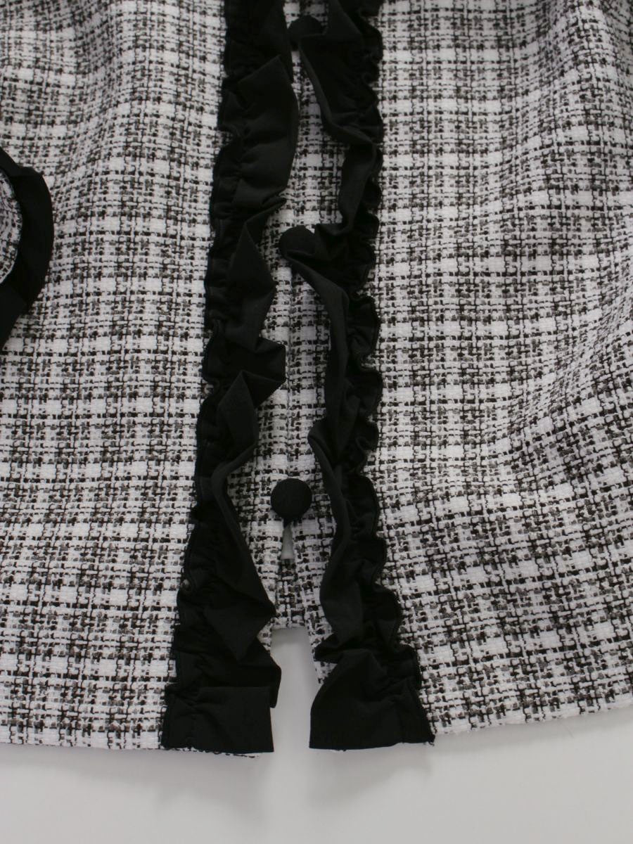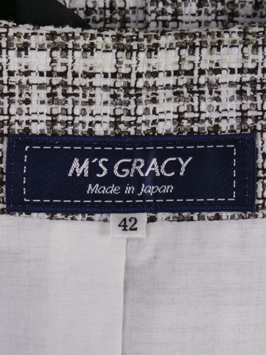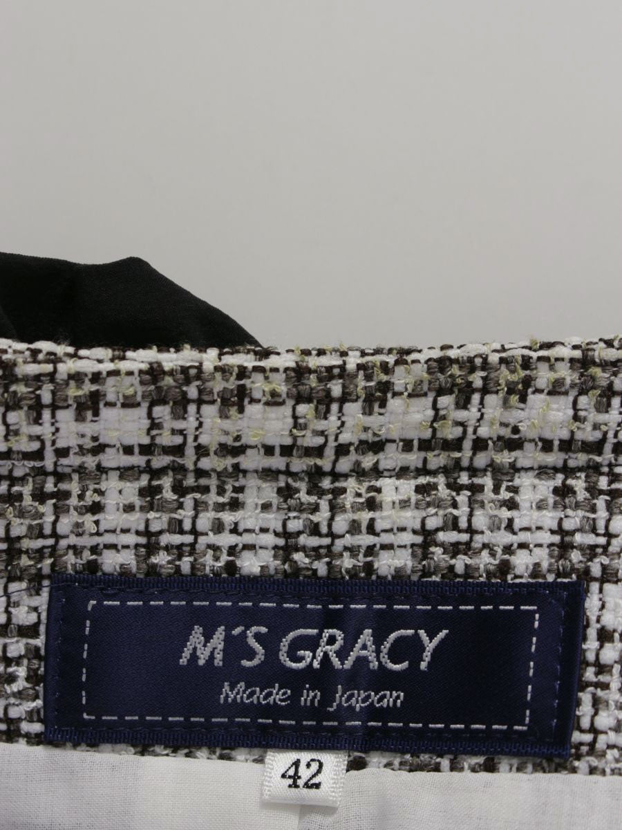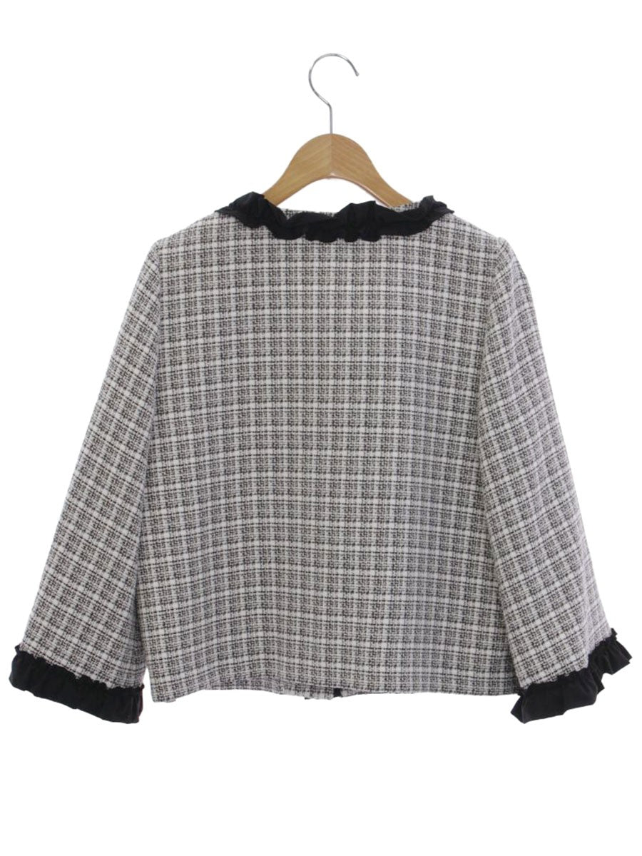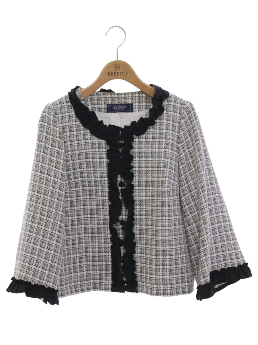 エムズグレイシー リボンフリルツイードジャケット 314310 42 ホワイト/ブラック IT4L86HAG3I0