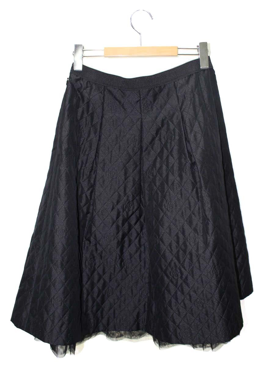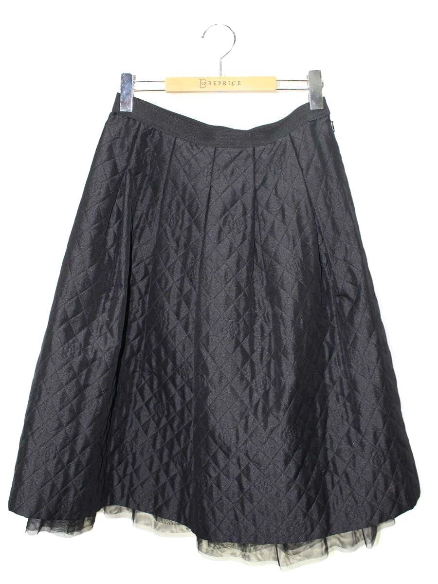 エムズグレイシー 117505 スカート 40 ブラック カメリア キルティング風 ジャガード IT4UE1VVJ1GS