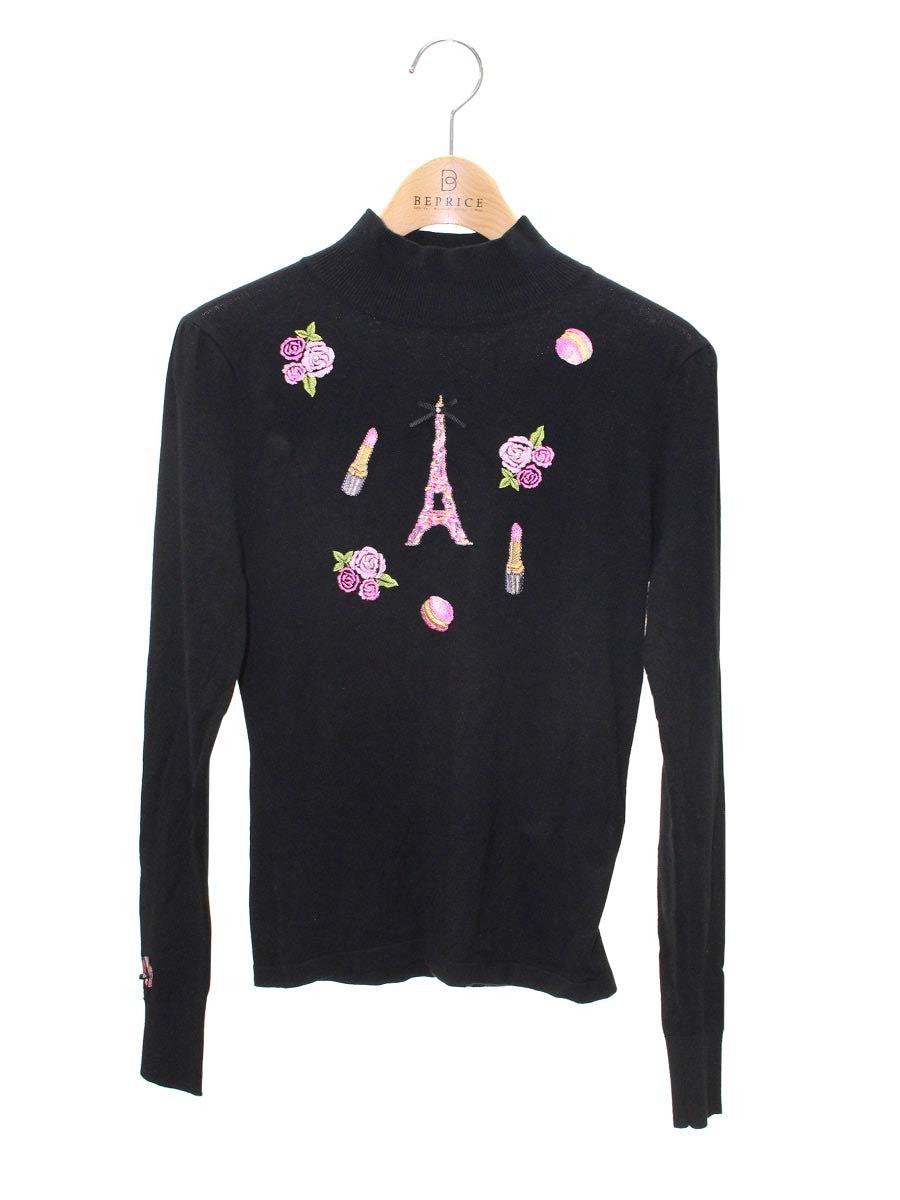 スーパービューティー ニット 38 ブラック フラワーモチーフ 刺繍 ハイネック IT50UGO3R5W2