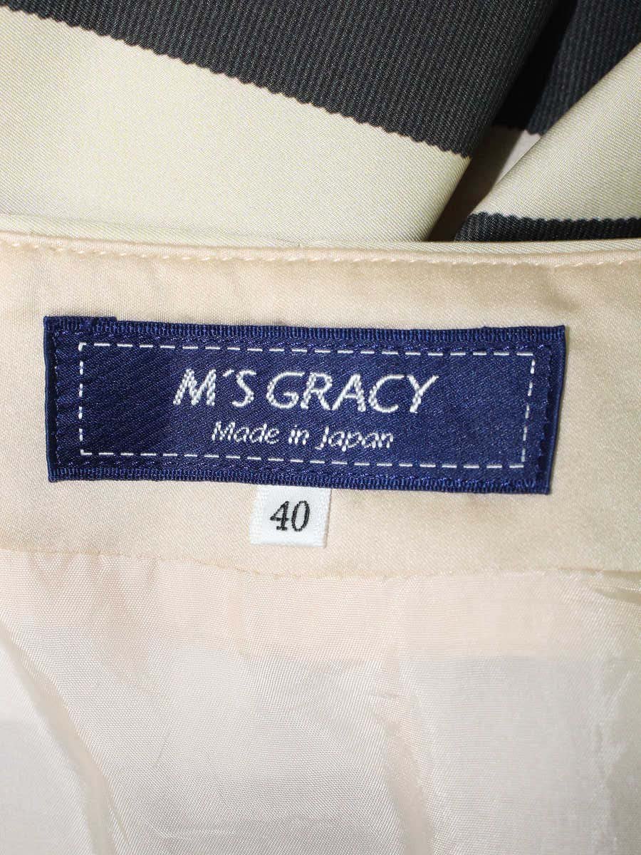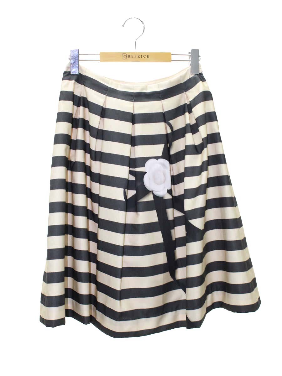 エムズグレイシー 817125 スカート 40 ベージュ カメリアプリント ボーダー IT5580DI174R