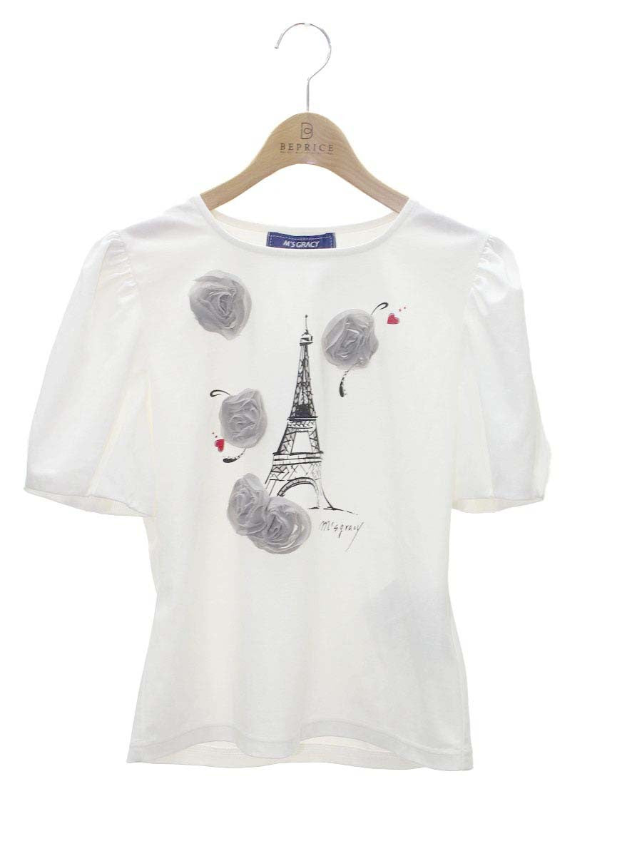 エムズグレイシー 415326 トップス 38 ホワイト エッフェル塔 ハート ラインストーン IT57V1HODSCW