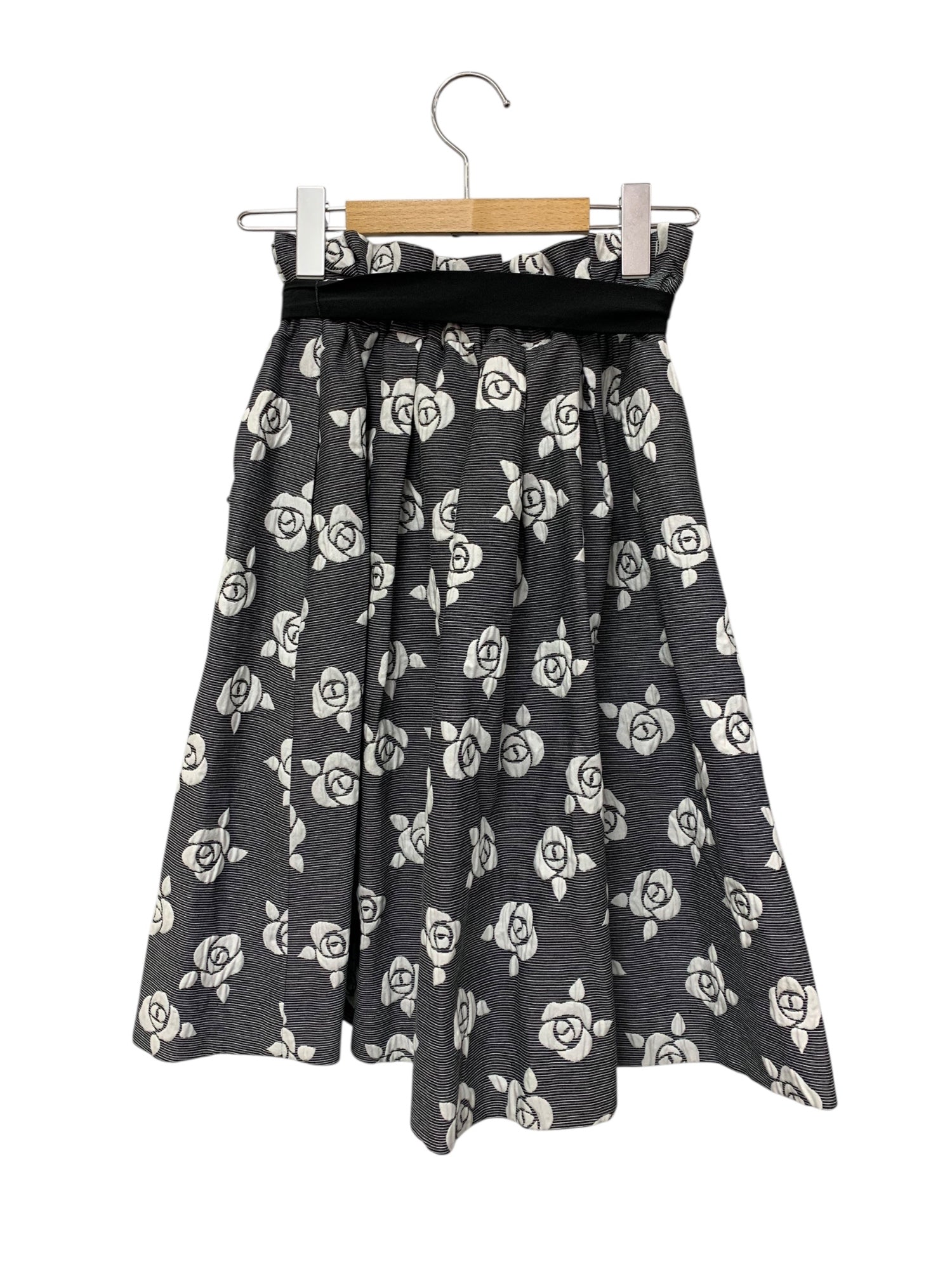 エムズグレイシー 727114 スカート 38 ブラック バラモチーフ フレアー IT5NJNJVFZZ0