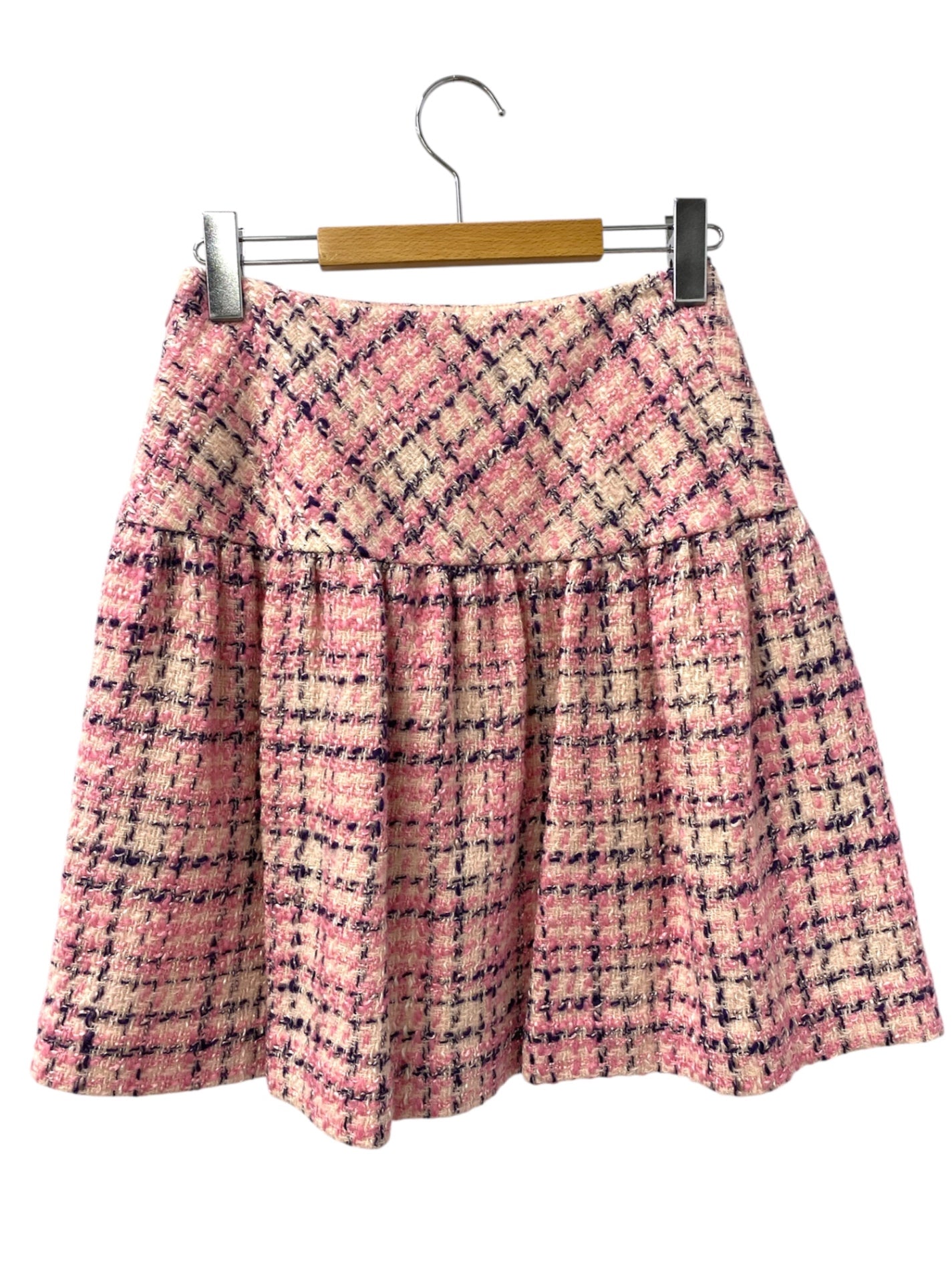 エムズグレイシー 527562 スカート 36 ピンク ウール ツイード チェック IT64ZE13KW1B