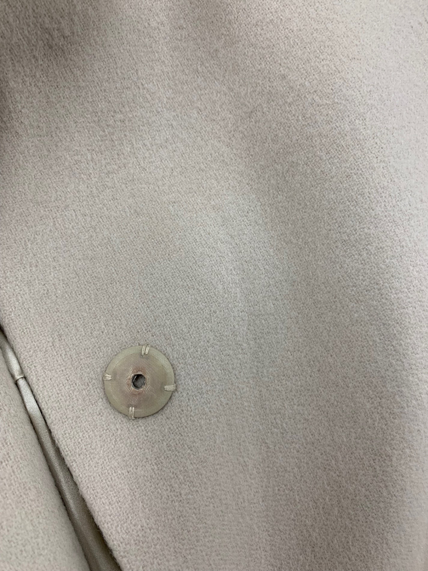 裏地の裾付近と表地のボタン付近に色付きがございます。