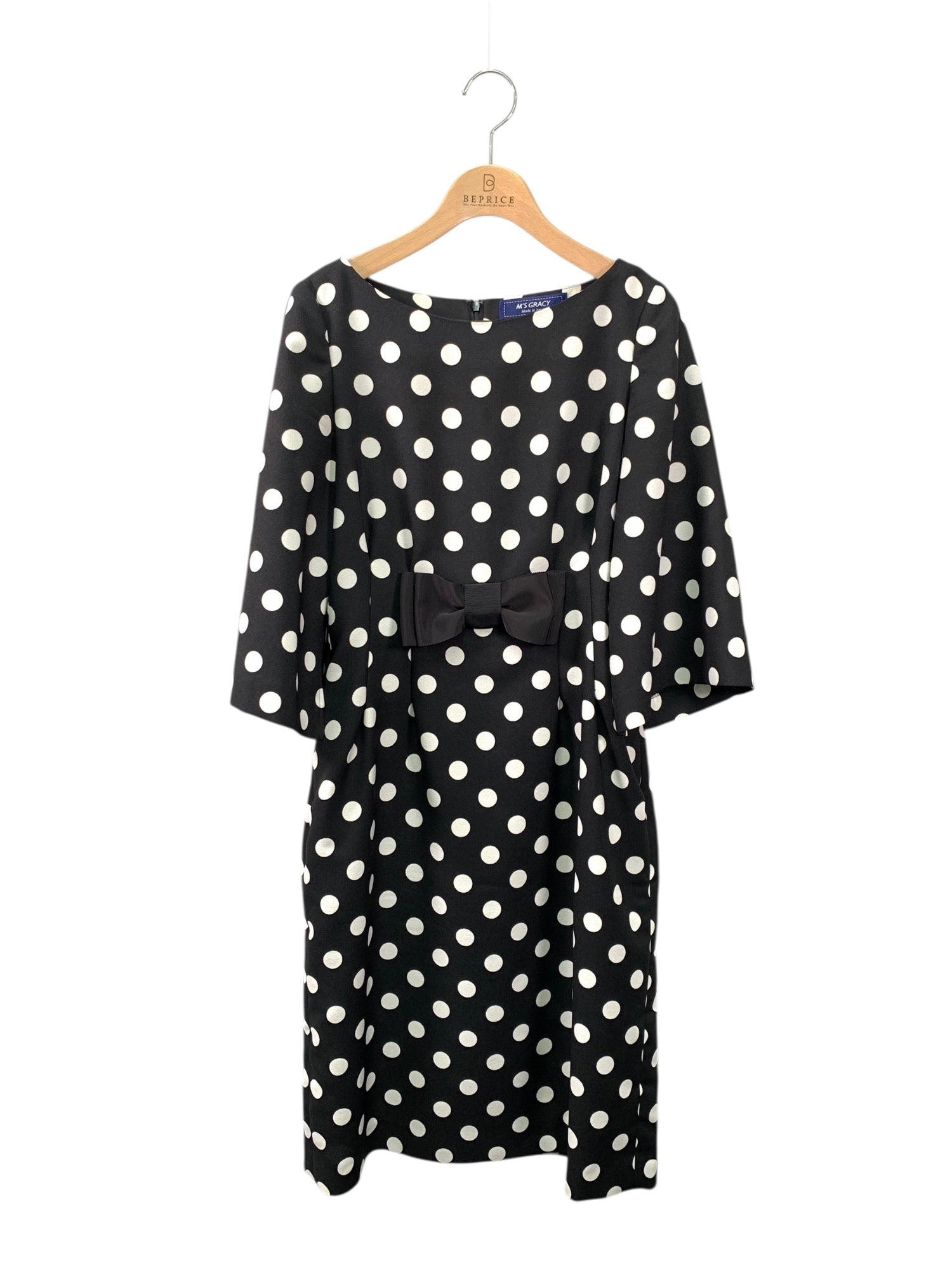 エムズグレイシー 011326 ワンピース 38 ブラック 水玉 リボン IT6UDJUP8Z0G