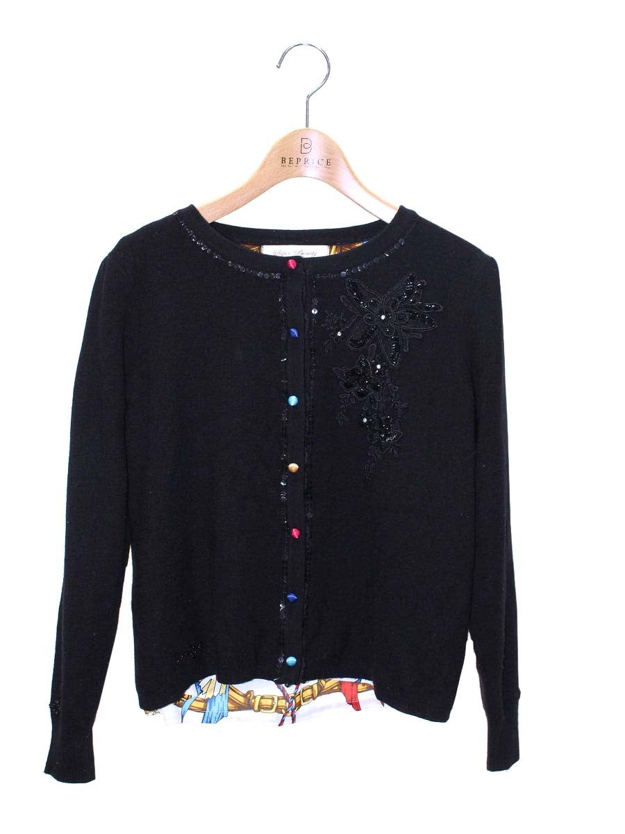 スーパービューティー カーディガン 42 ブラック ビジュー 刺繍 マルチカラーボタン IT70M2X11LUO