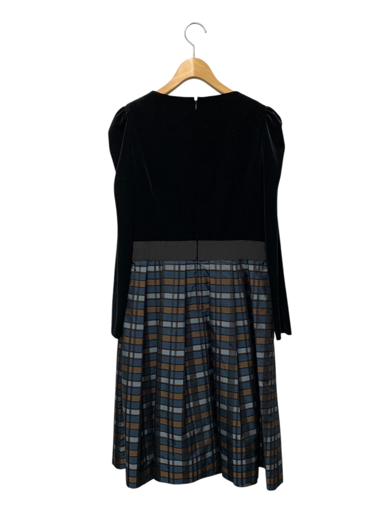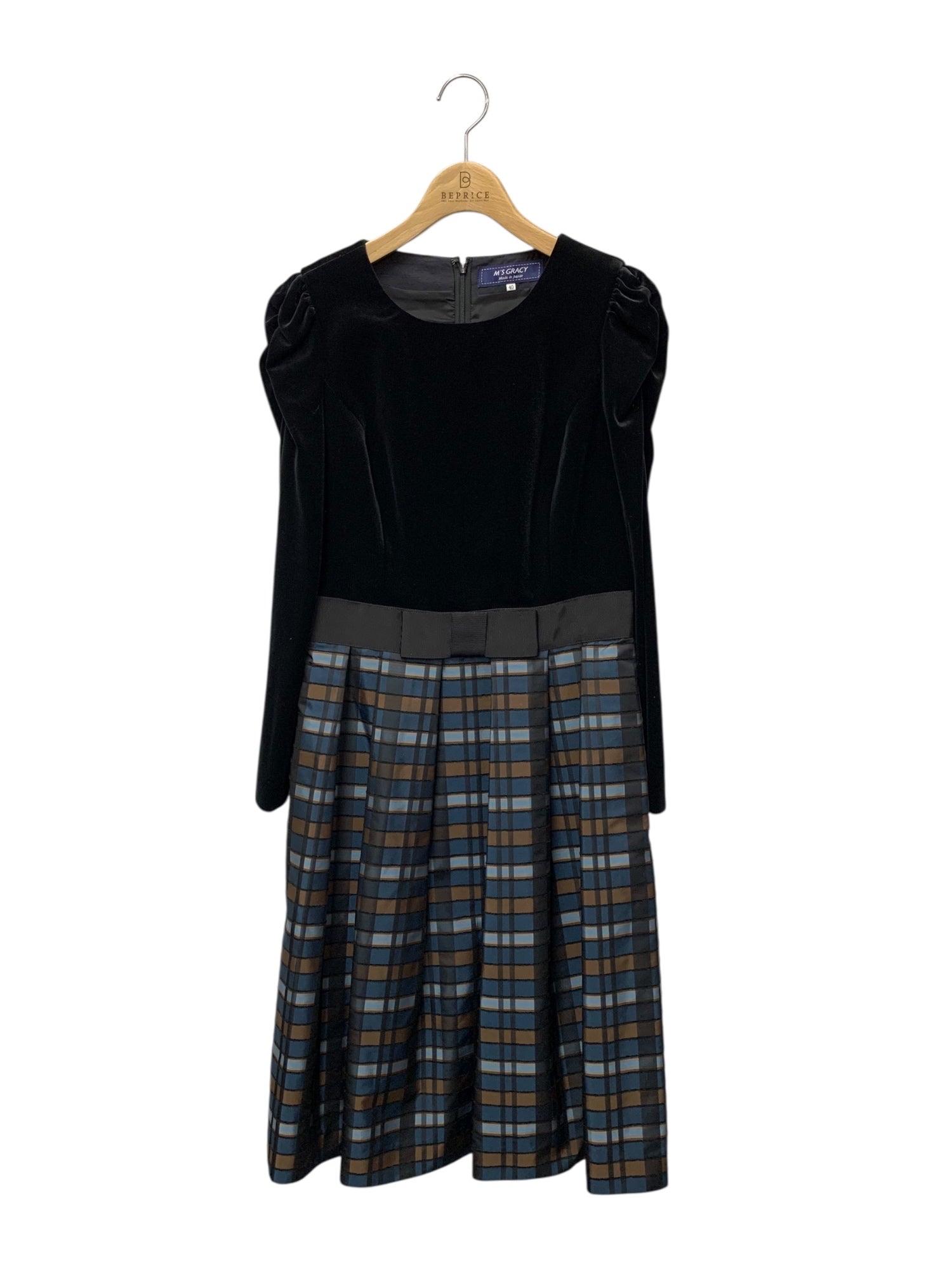 エムズグレイシー 811508 ワンピース 40 ブラック チェック リボン ベロア IT7A01QCDMG0