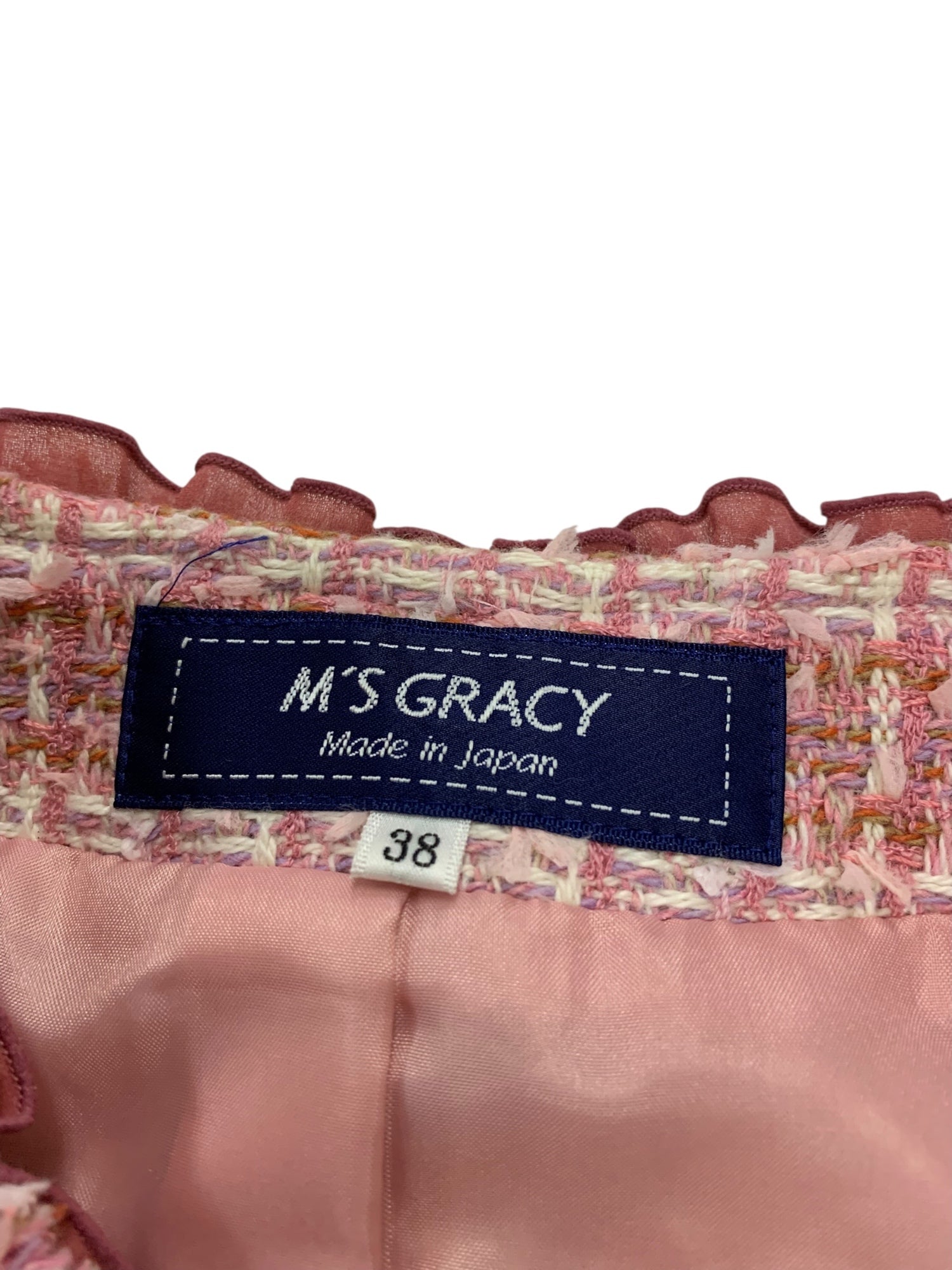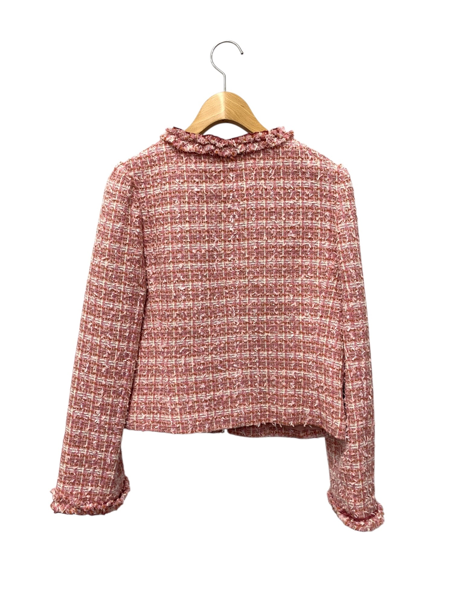 エムズグレイシー 314522 ジャケット 38 ピンク ツイード ノーカラー フリル IT7I49P396G0