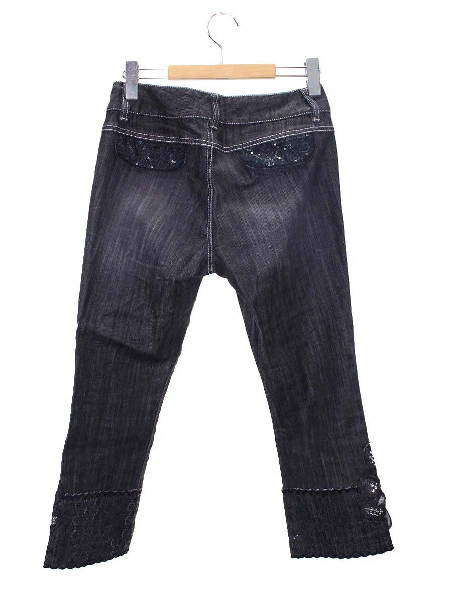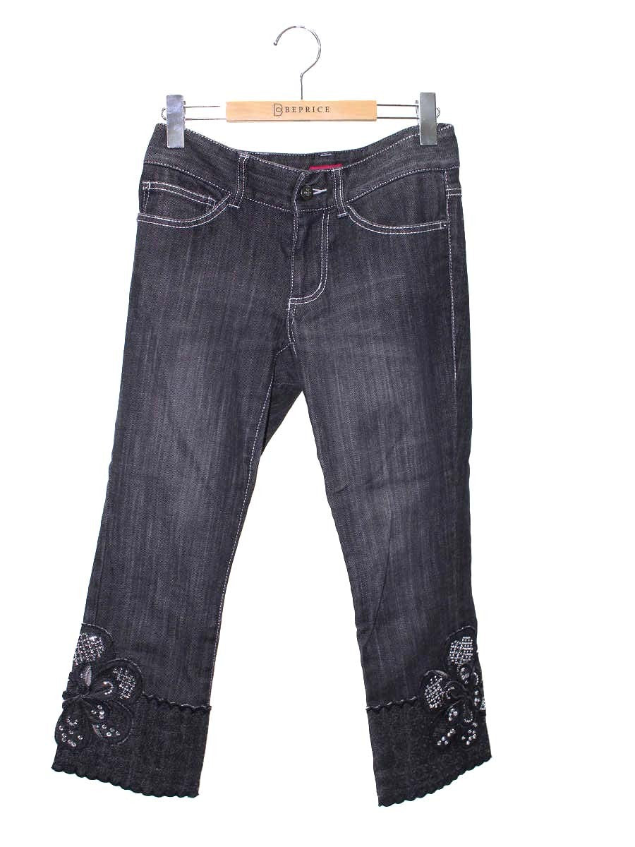 トゥービーシック W5R01-410-09 デニムパンツ 40 ブラック スパンコール フラワー フレア IT7Z9KBWCLJ4