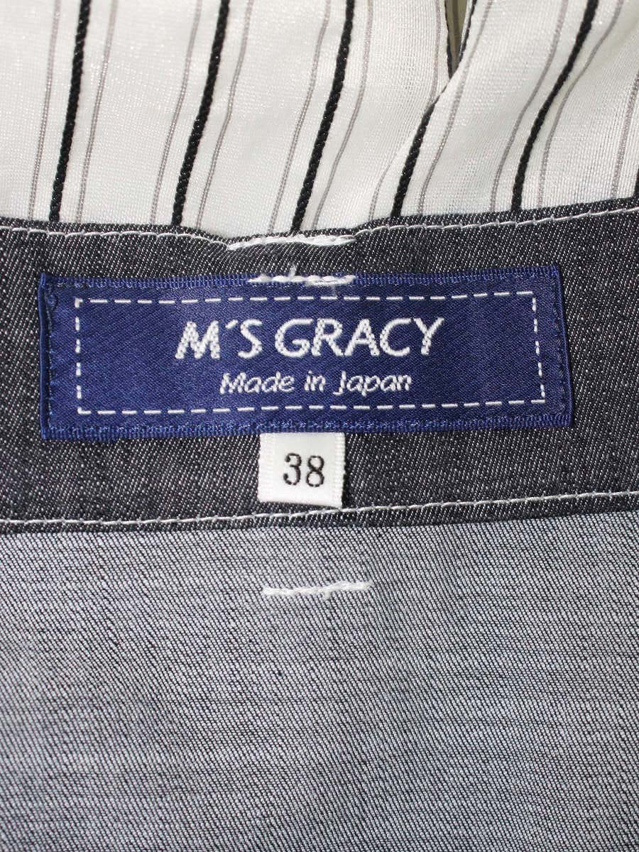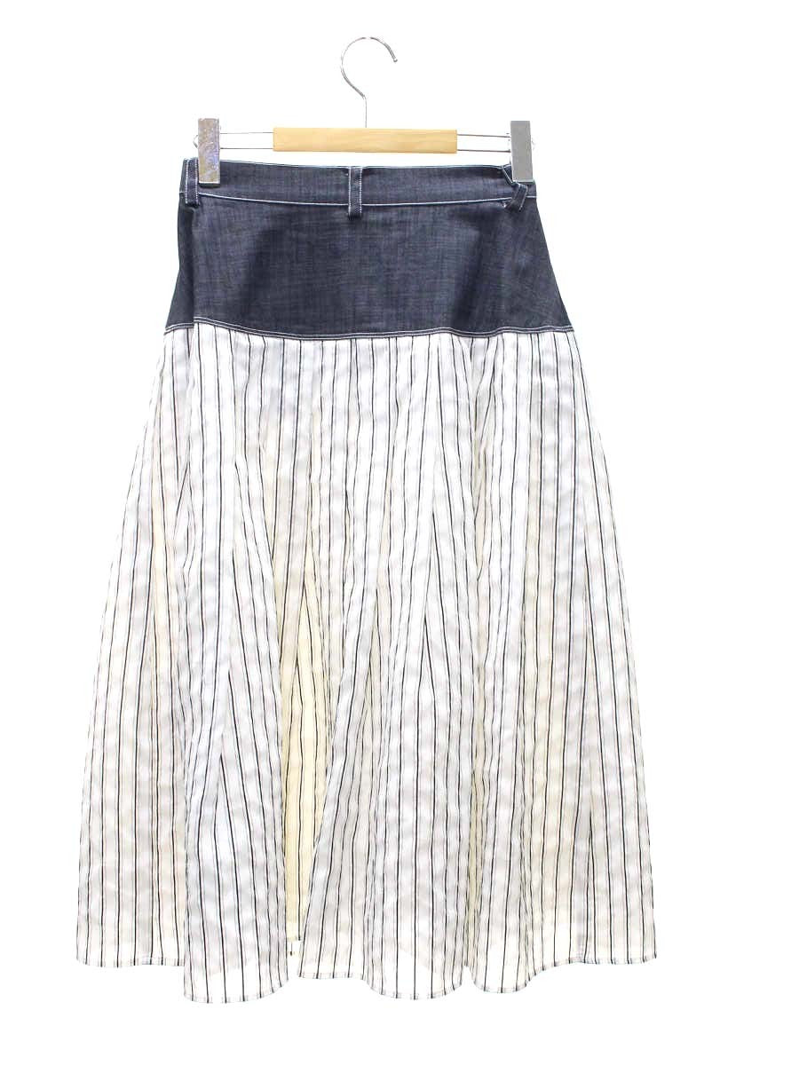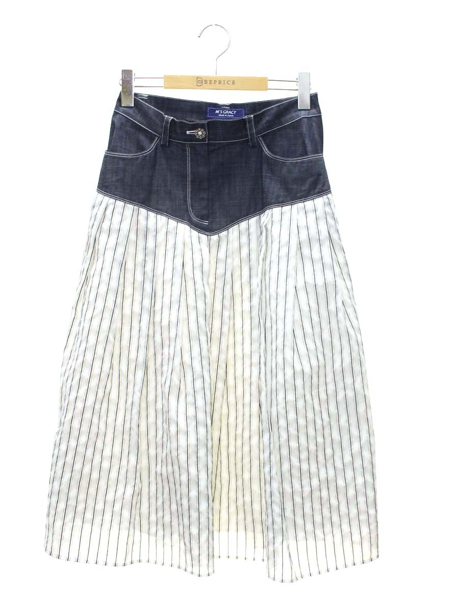 エムズグレイシー 417340 スカート 38 ネイビー/ホワイト デニム ストライプ タックフレア IT8U18KN1GG2