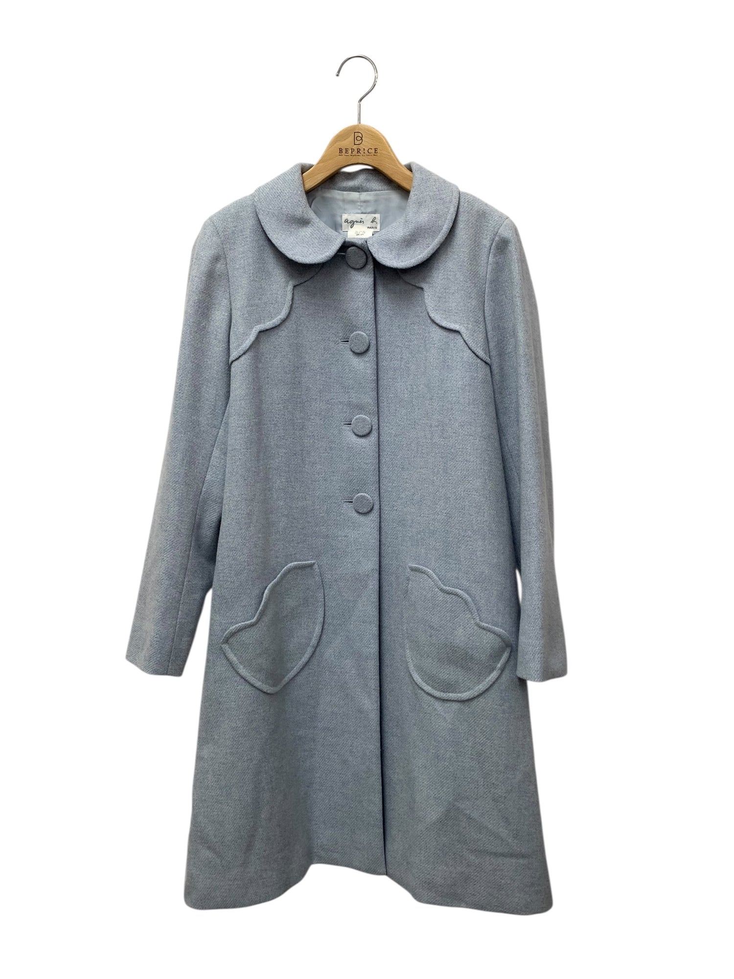 アニエスベー 1204-3175 08W コート 40 ブルー クルミボタン スカラップ ウール IT993CETHISA
