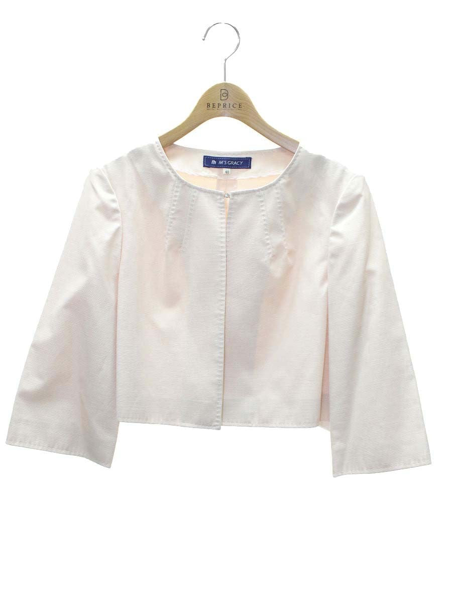 エムズグレイシー 124502 ノーカラージャケット 40 ピンク ビジュー IT9DNF06VZC8