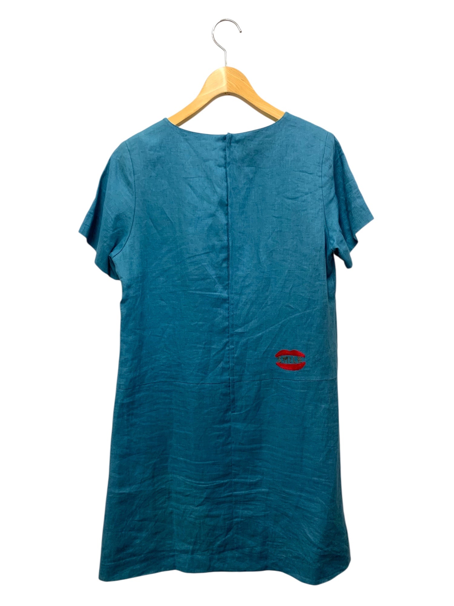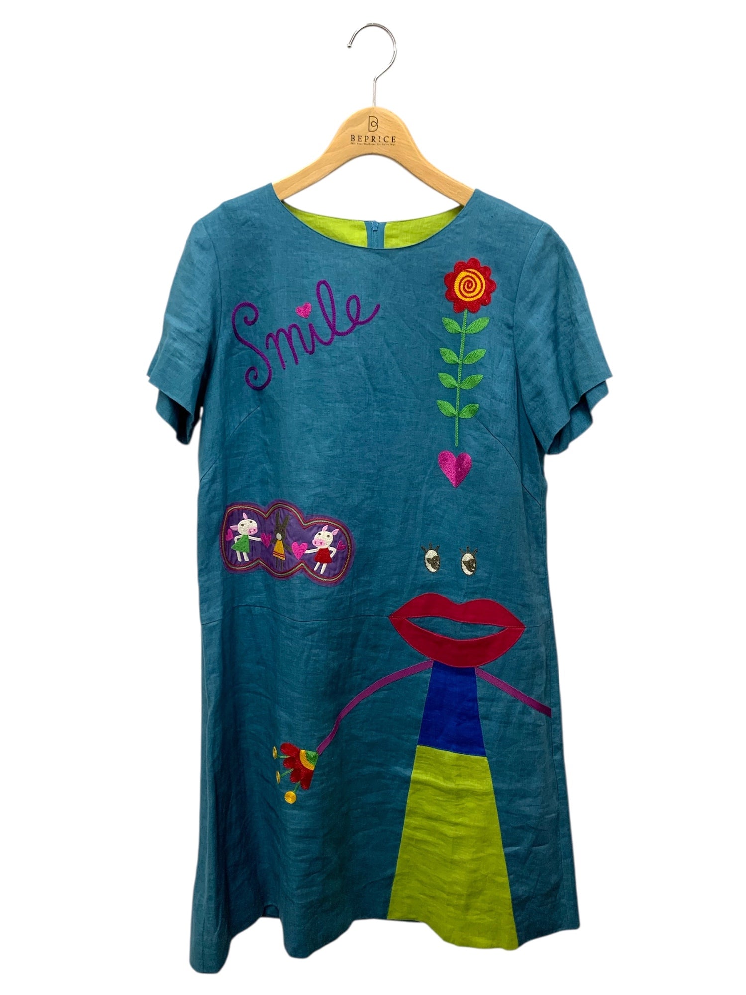 アルベロベロ 615136 ワンピース ブルー 麻 ブタ ウサギ フラワー 刺繍 IT9VM5WNMYAE