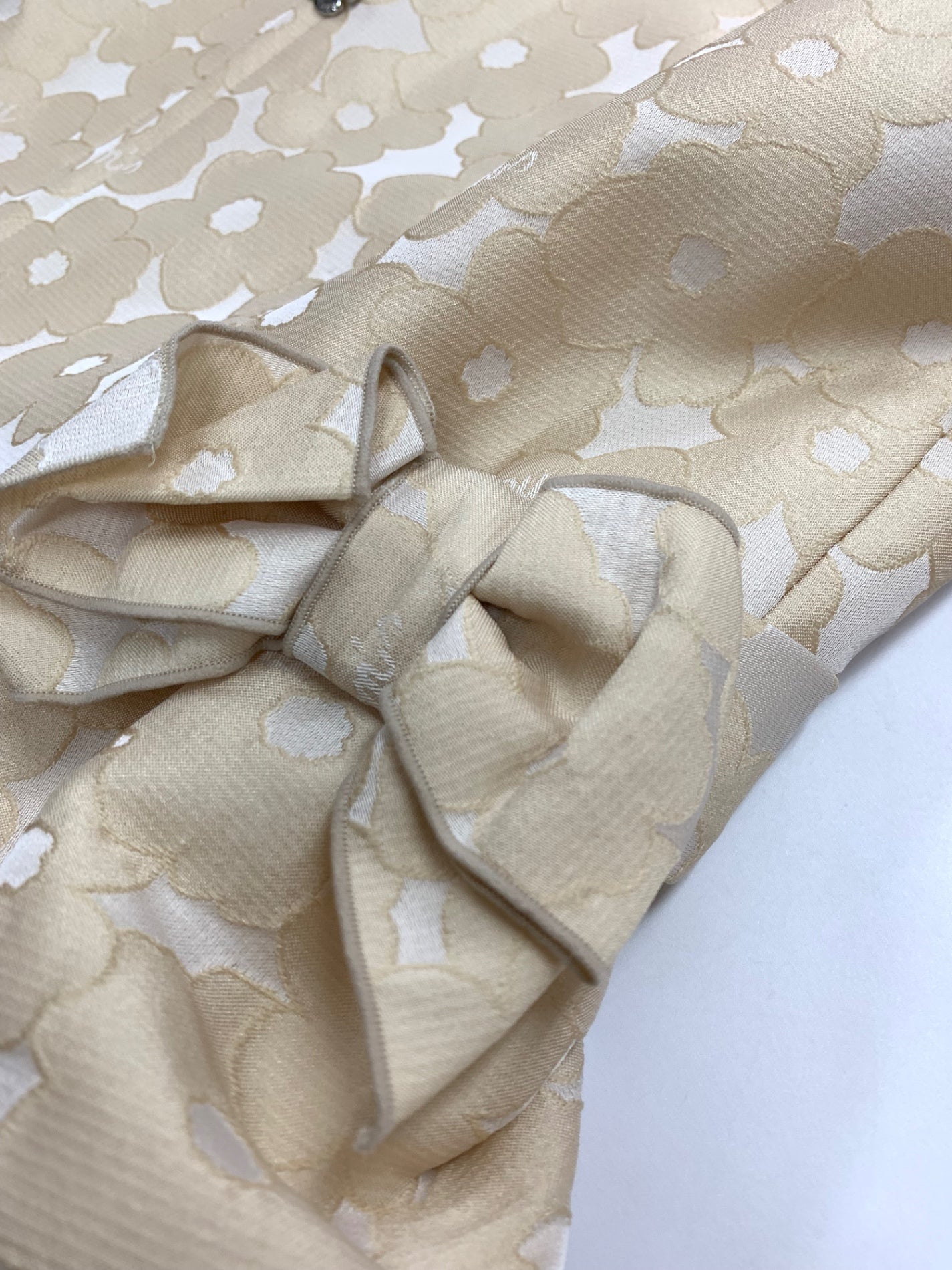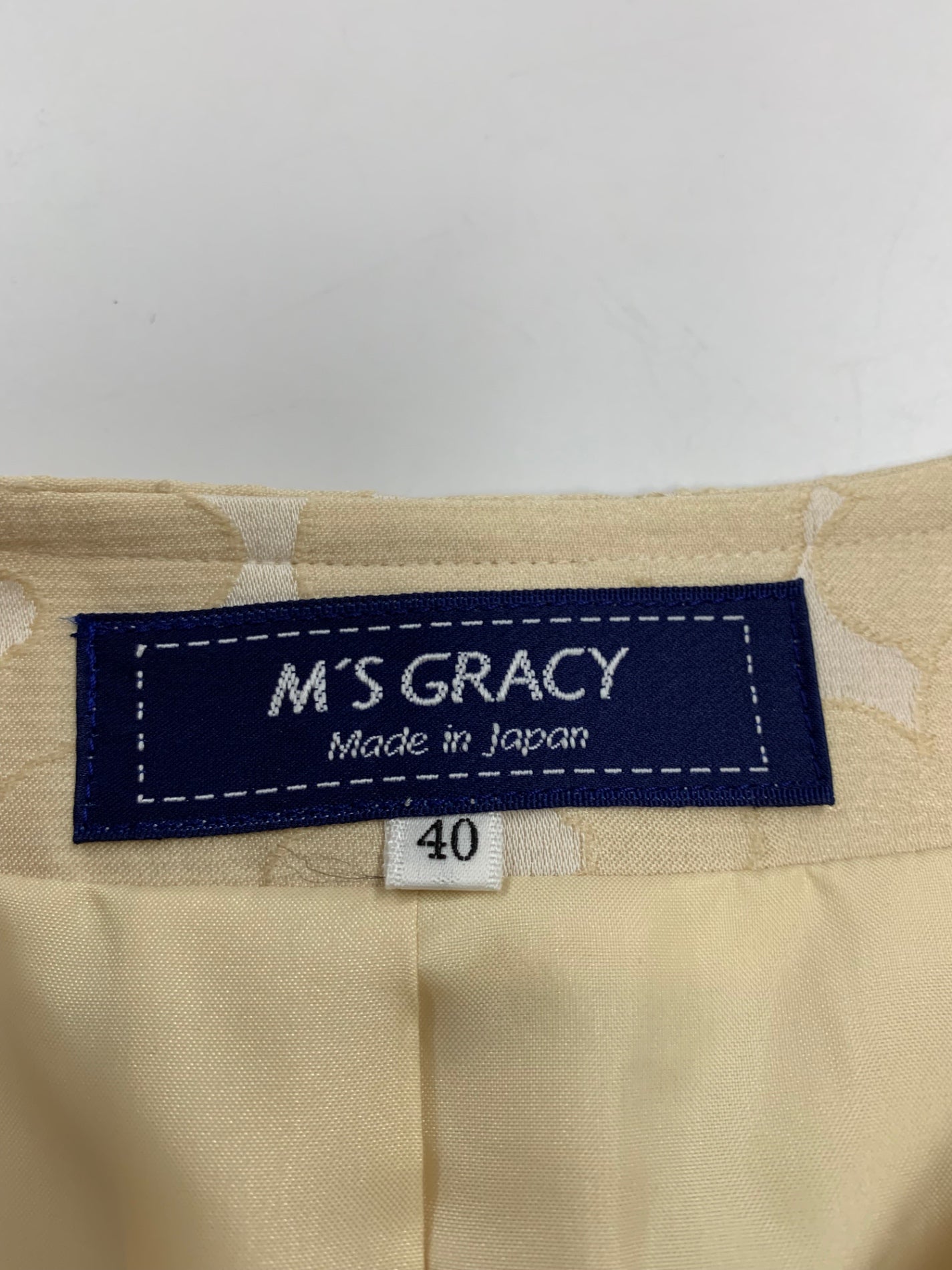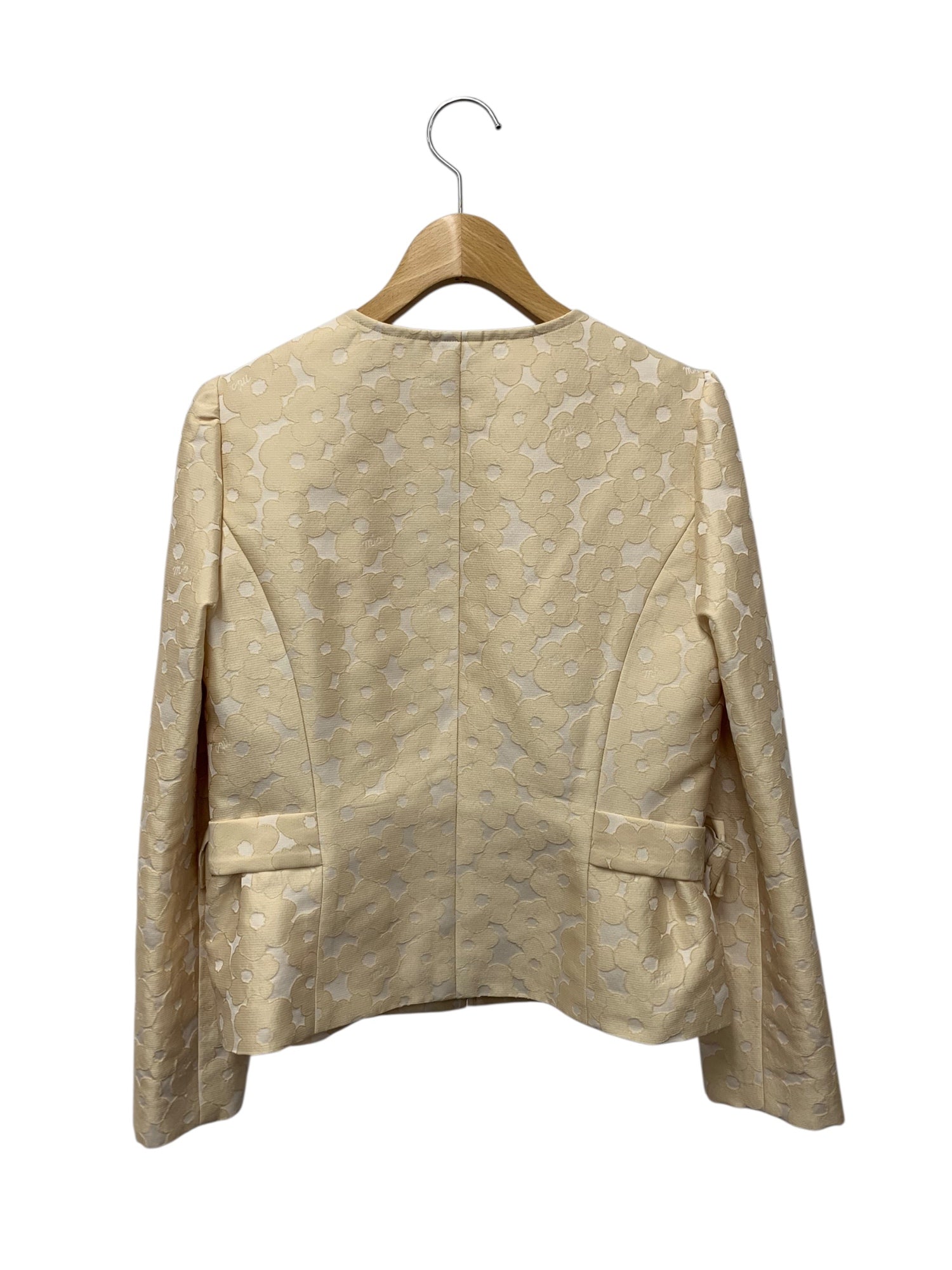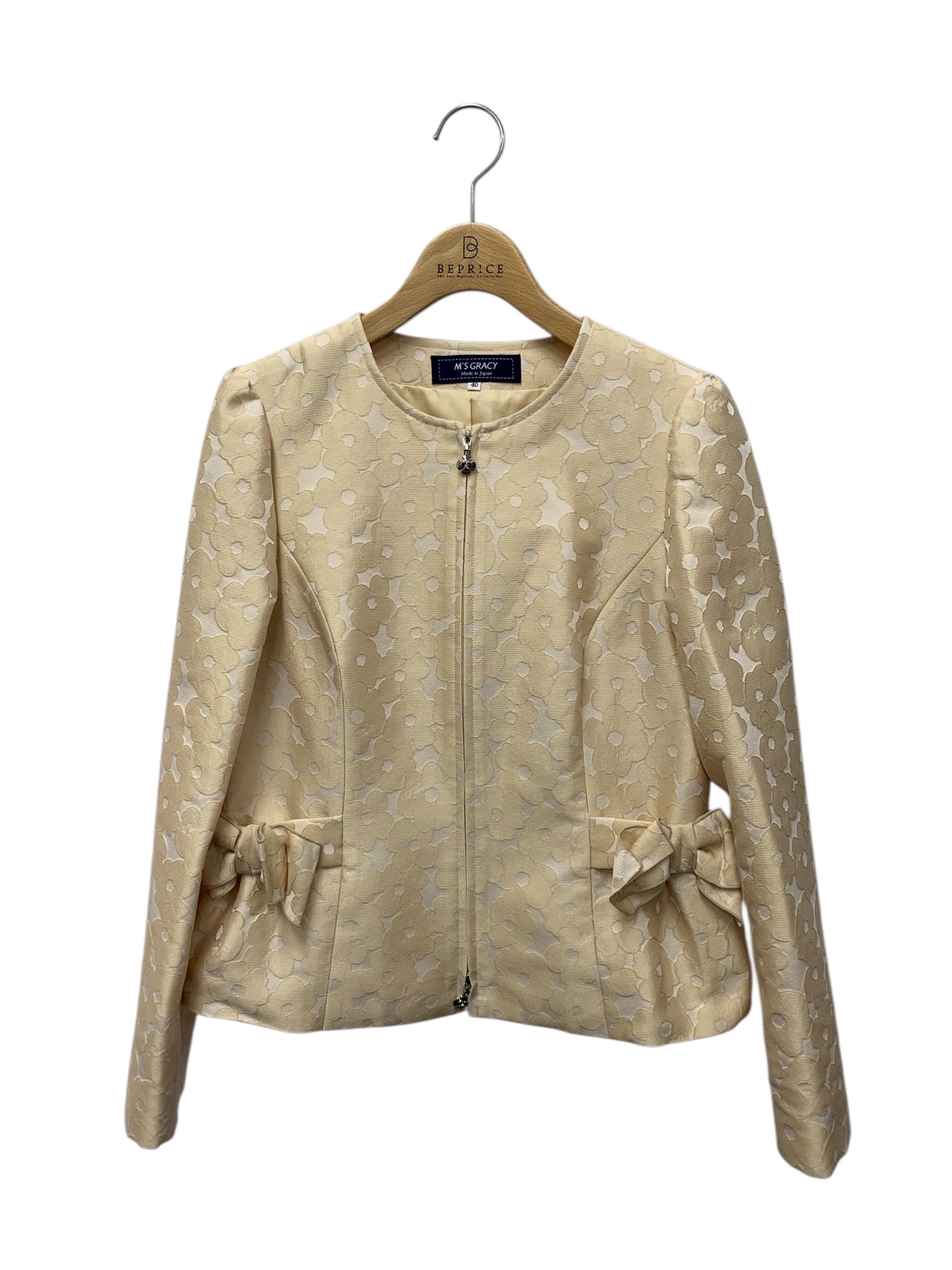 エムズグレイシー 414105 ジャケット 40 ベージュ ノーカラー カメリアジップ リボン ITB0TZ8Z7P3K