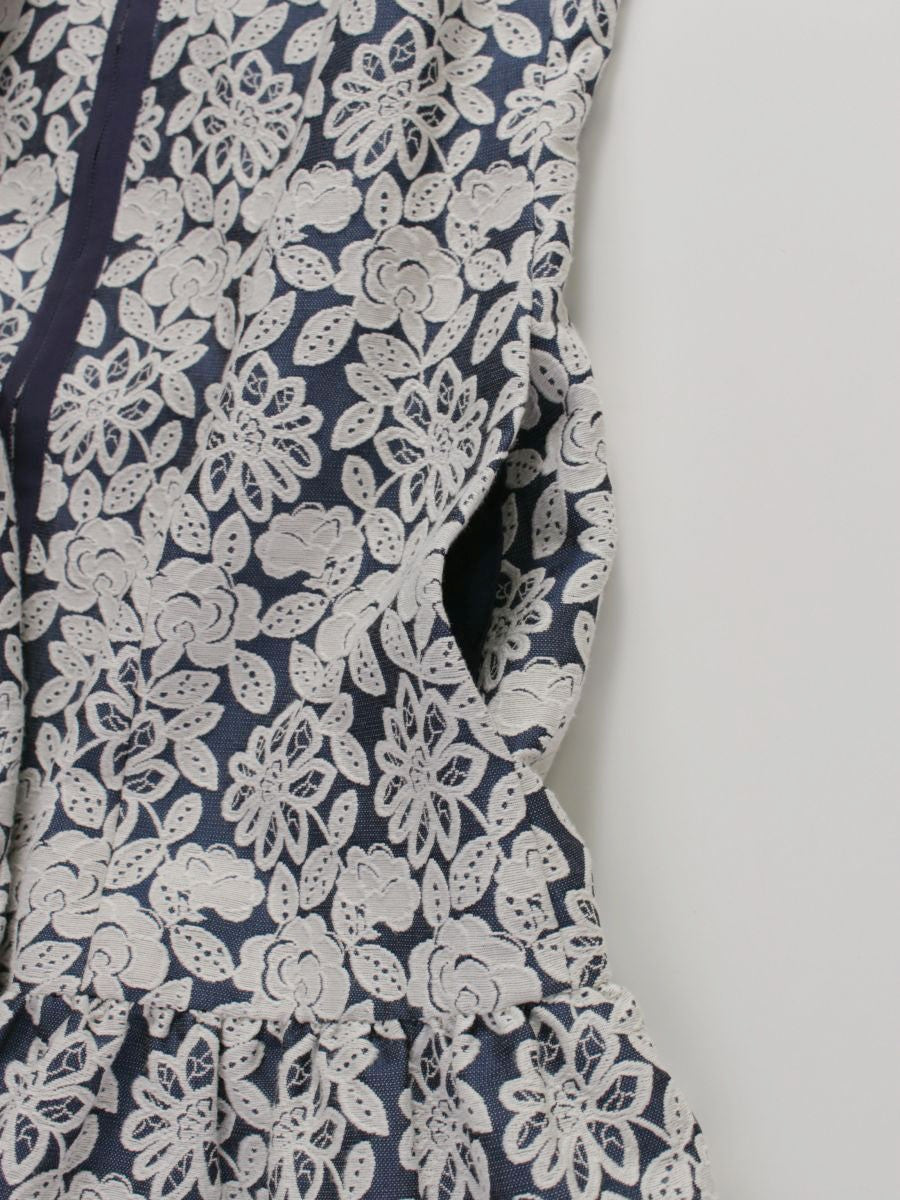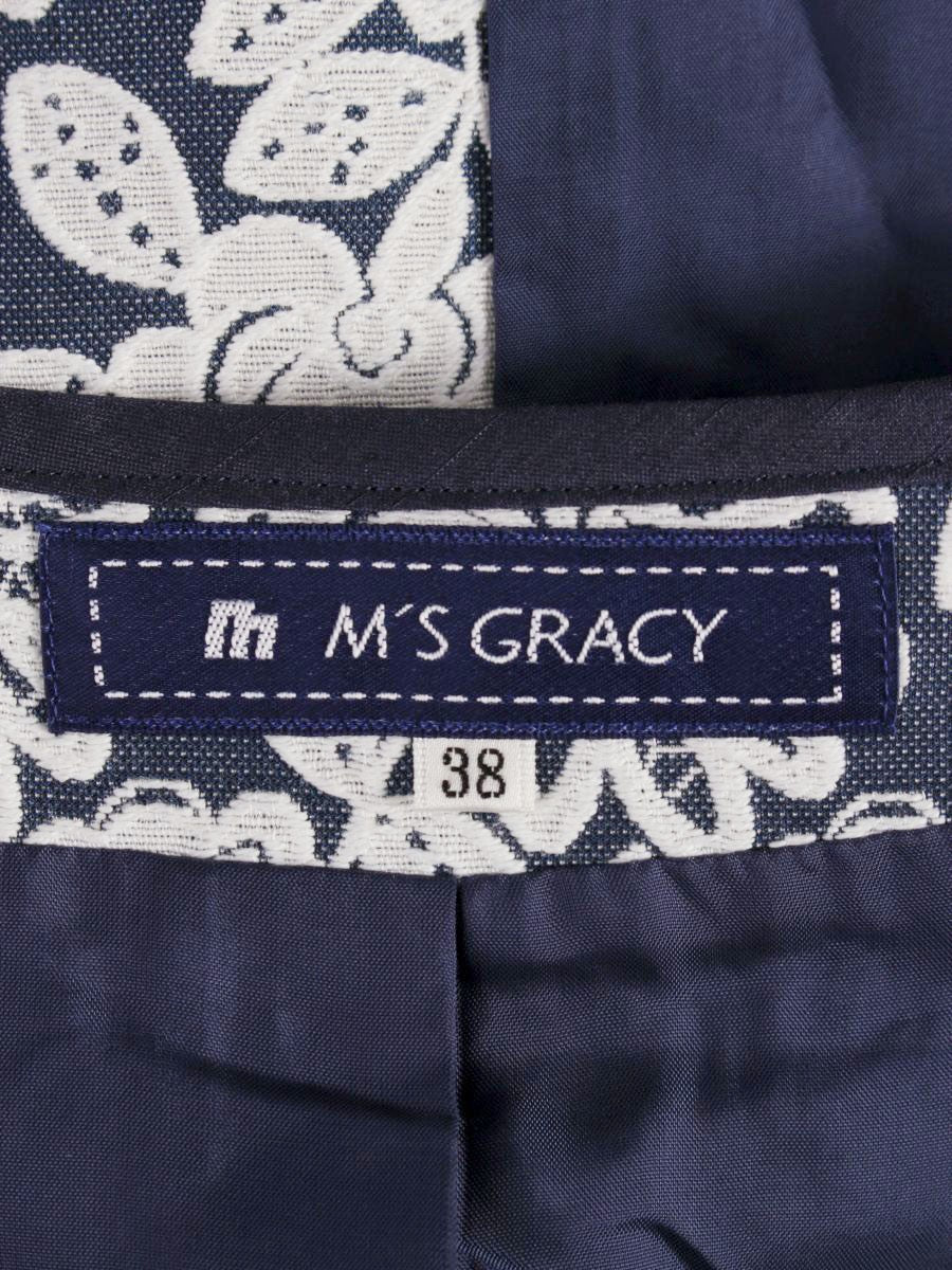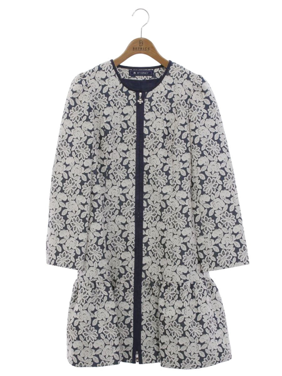 エムズグレイシー 629101 コート 38 ブルー フラワーモチーフ レースノーカラー カメリア Wジップ ITB119EMRSAN 【SALE】