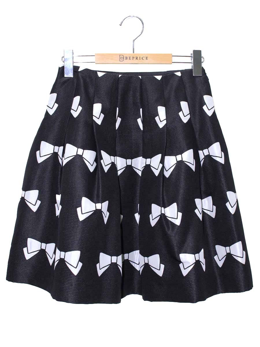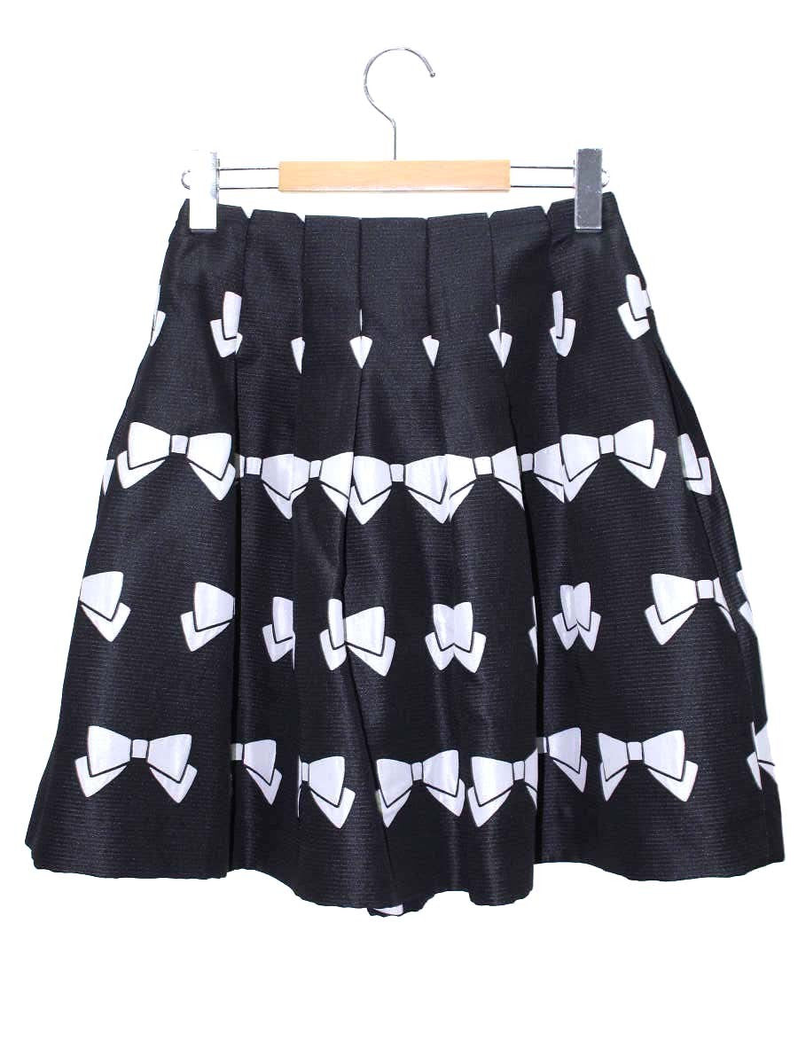 エムズグレイシー 427506 スカート 36 ブラック リボンモチーフ タックフレア ITB27UNLD5CS