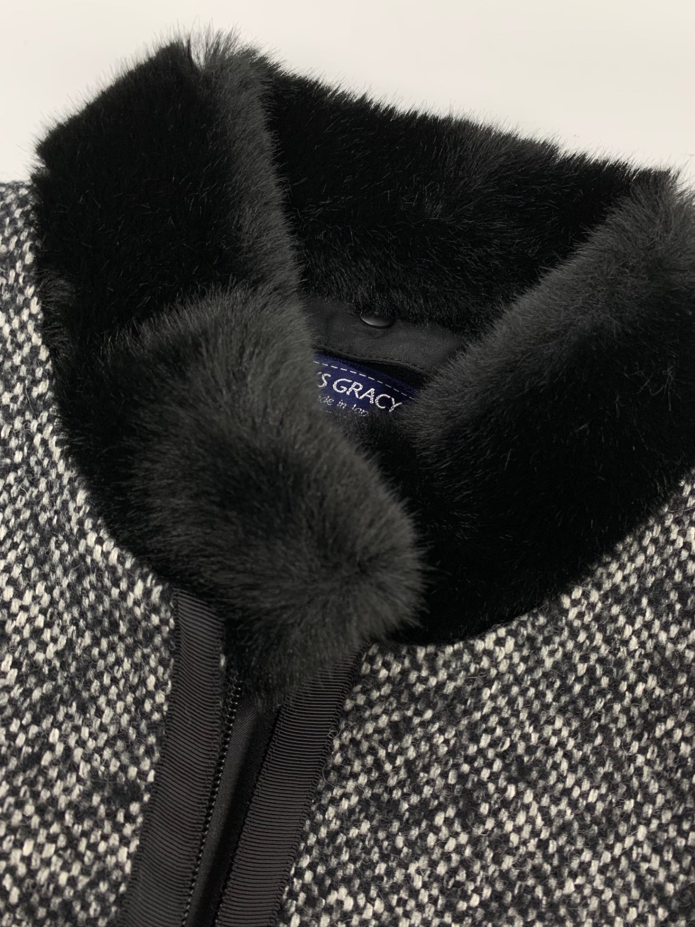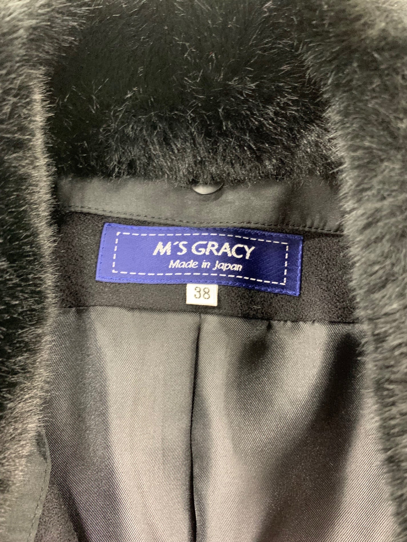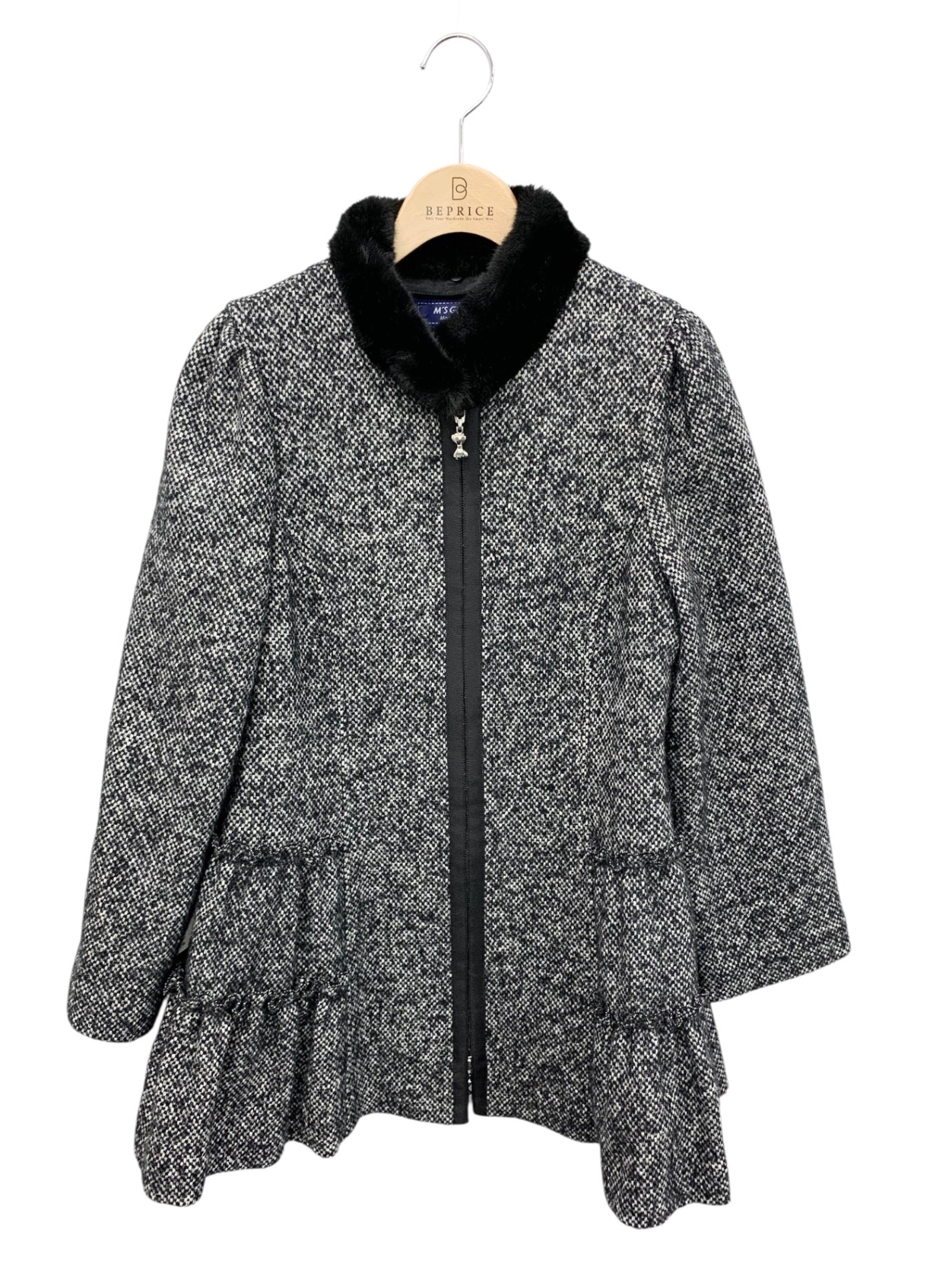 エムズグレイシー 119607 コート 38 ブラック ウール シルク混 ファー ITB7FPUD283M