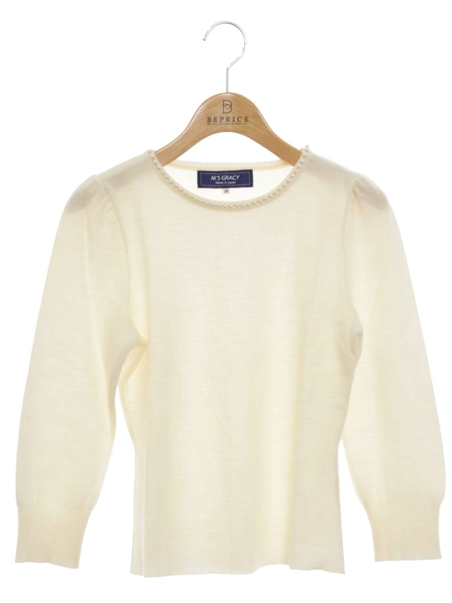 エムズグレイシー 728704 ニット セーター 38 ベージュ ウール パール ITBB0COU50KY