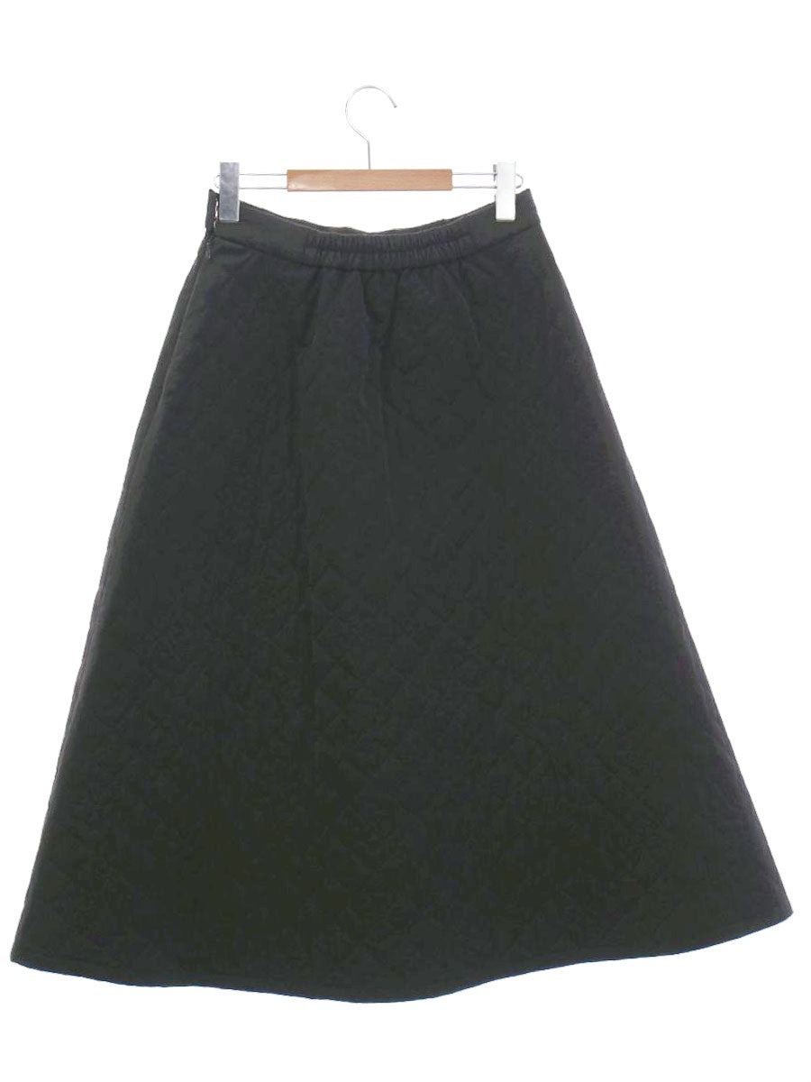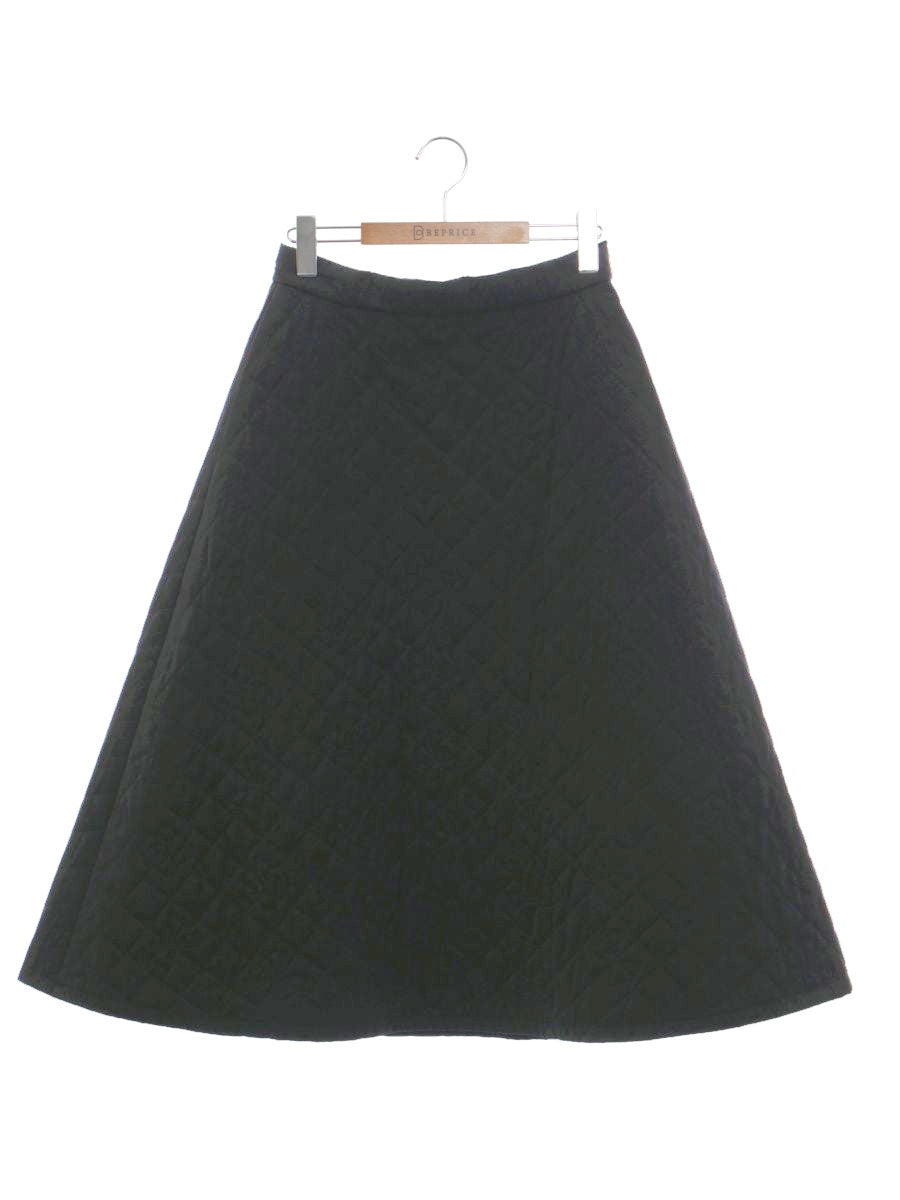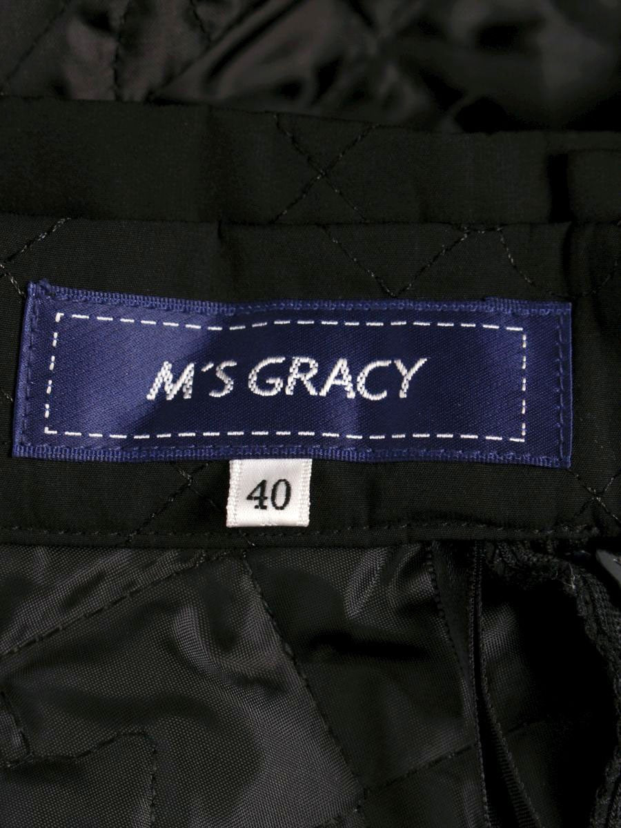 エムズグレイシー カメリアxリボン柄キルティングフレア 417613 スカート 40 ブラック ITBCMPIOEDDC