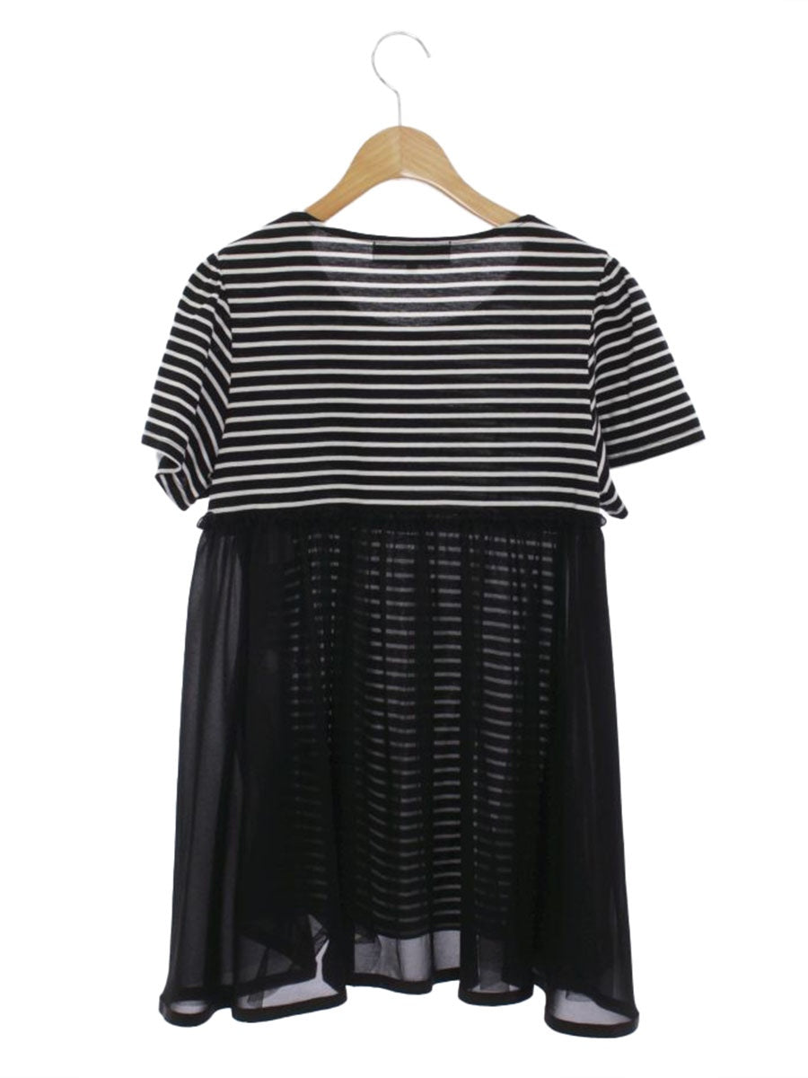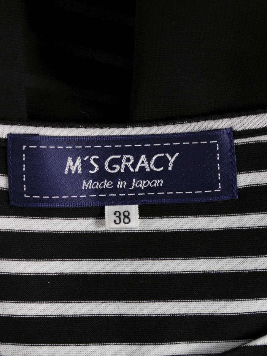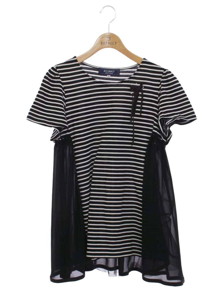 エムズグレイシー 015351 トップス 38 ブラック パール ストライプ リボン ITBXDRQSIZP0