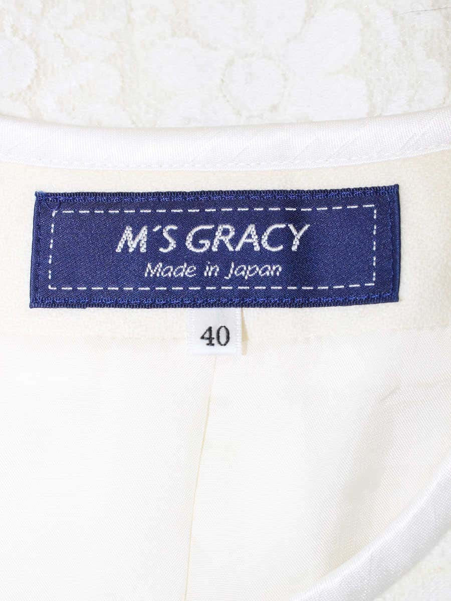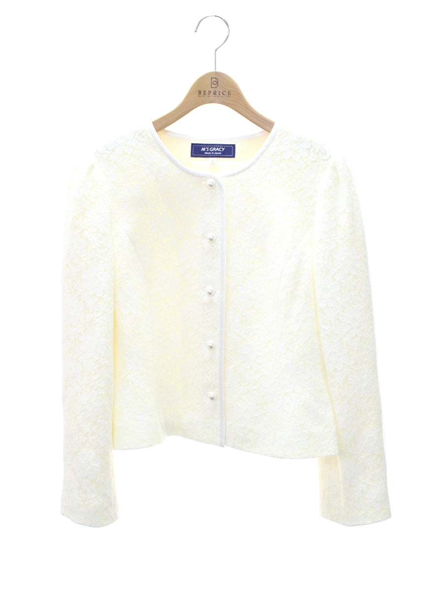 エムズグレイシー 724705 ジャケット 40 ホワイト フラワーモチーフ パールボタン ITCCIEO2BCB0