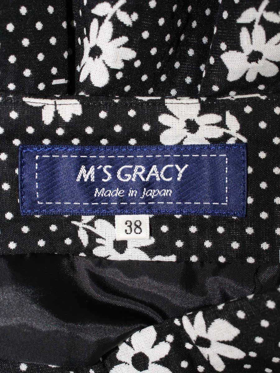エムズグレイシー お花xドットジャガード 417123 スカート 38 ブラック フラワーモチーフ タック ITDAVRMGS46K
