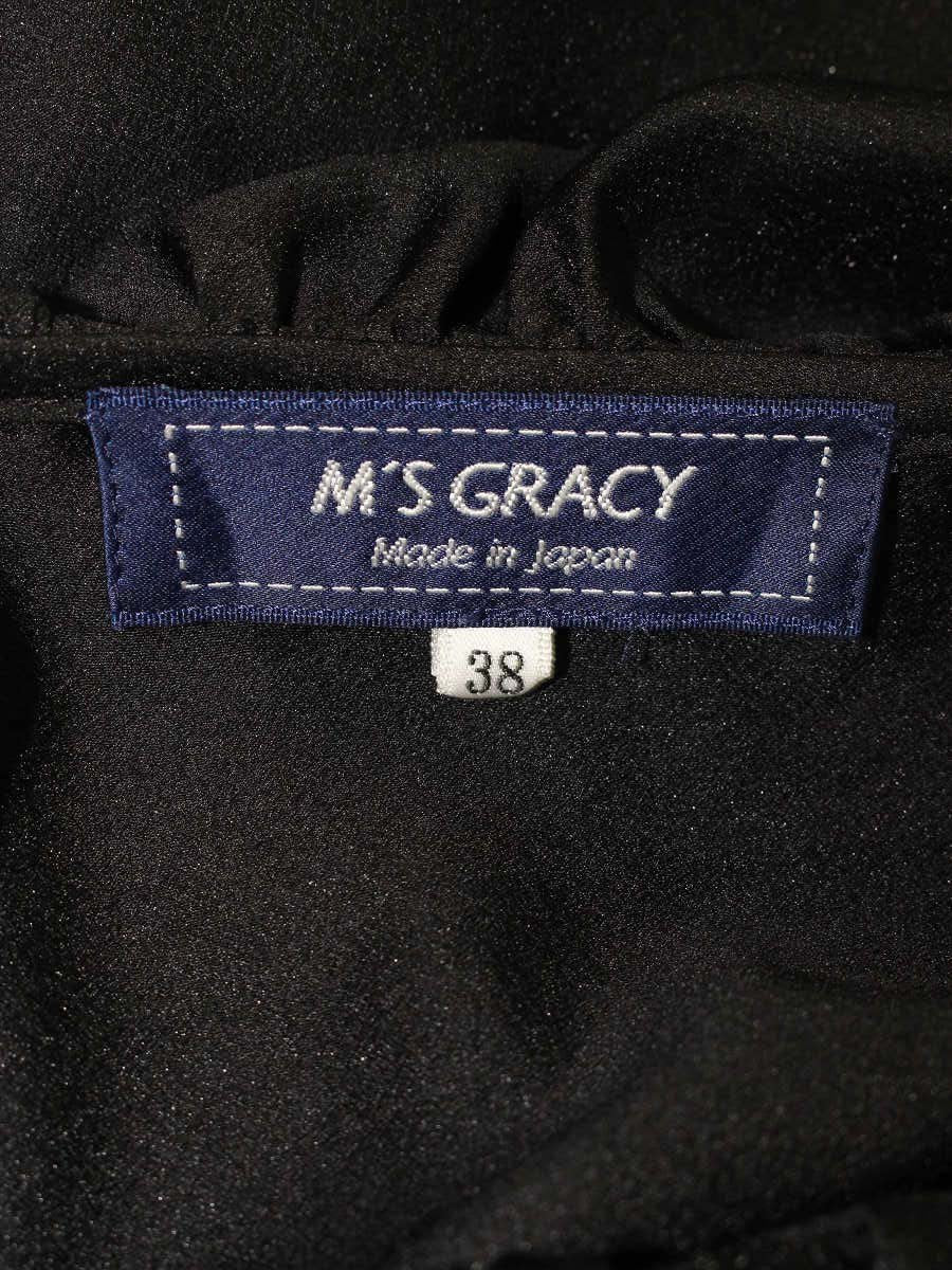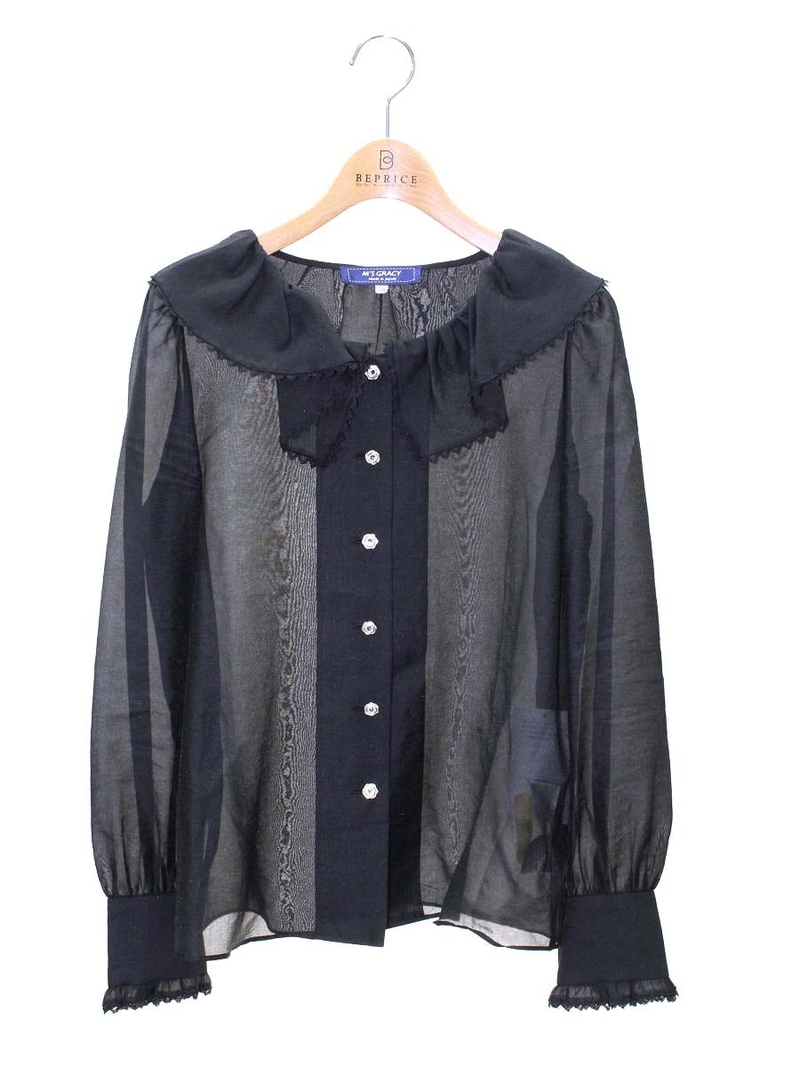 エムズグレイシー 110104 シャツ ブラウス 38 ブラック フリル カメリアボタン ITDH9N0H23KU