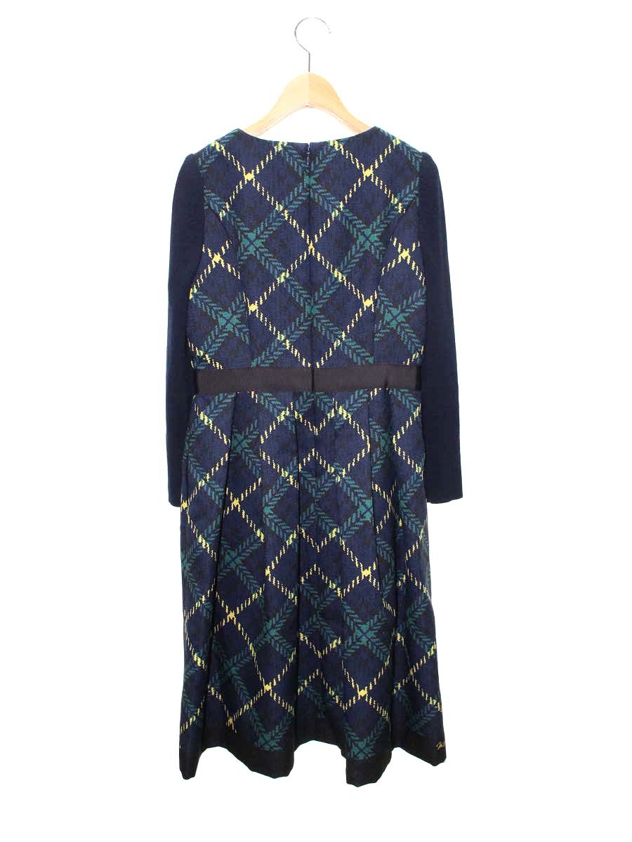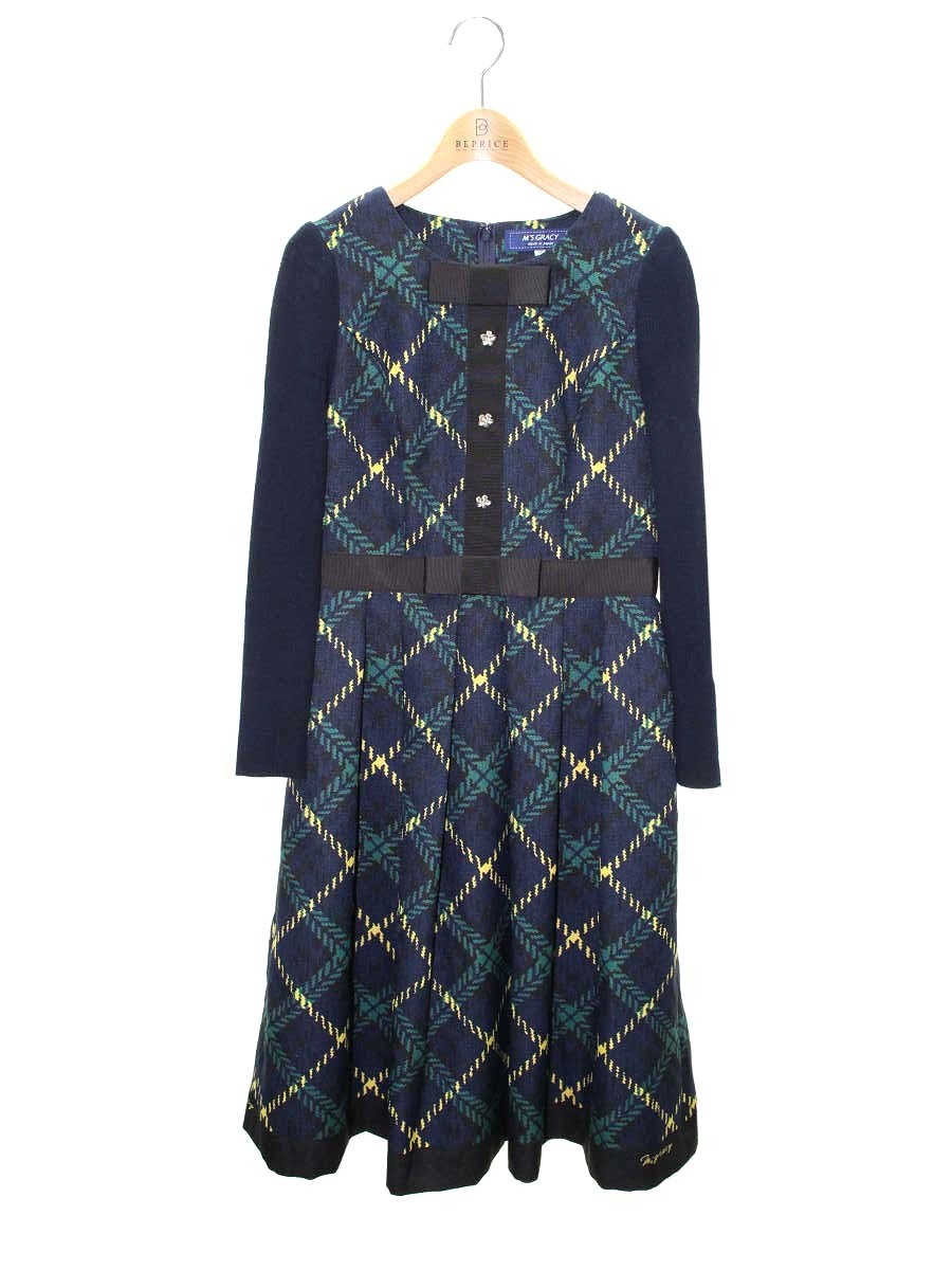 エムズグレイシー ネイビーxグリーンチェックワンピース 211510 36 ネイビー ITDL46Z0UDS4