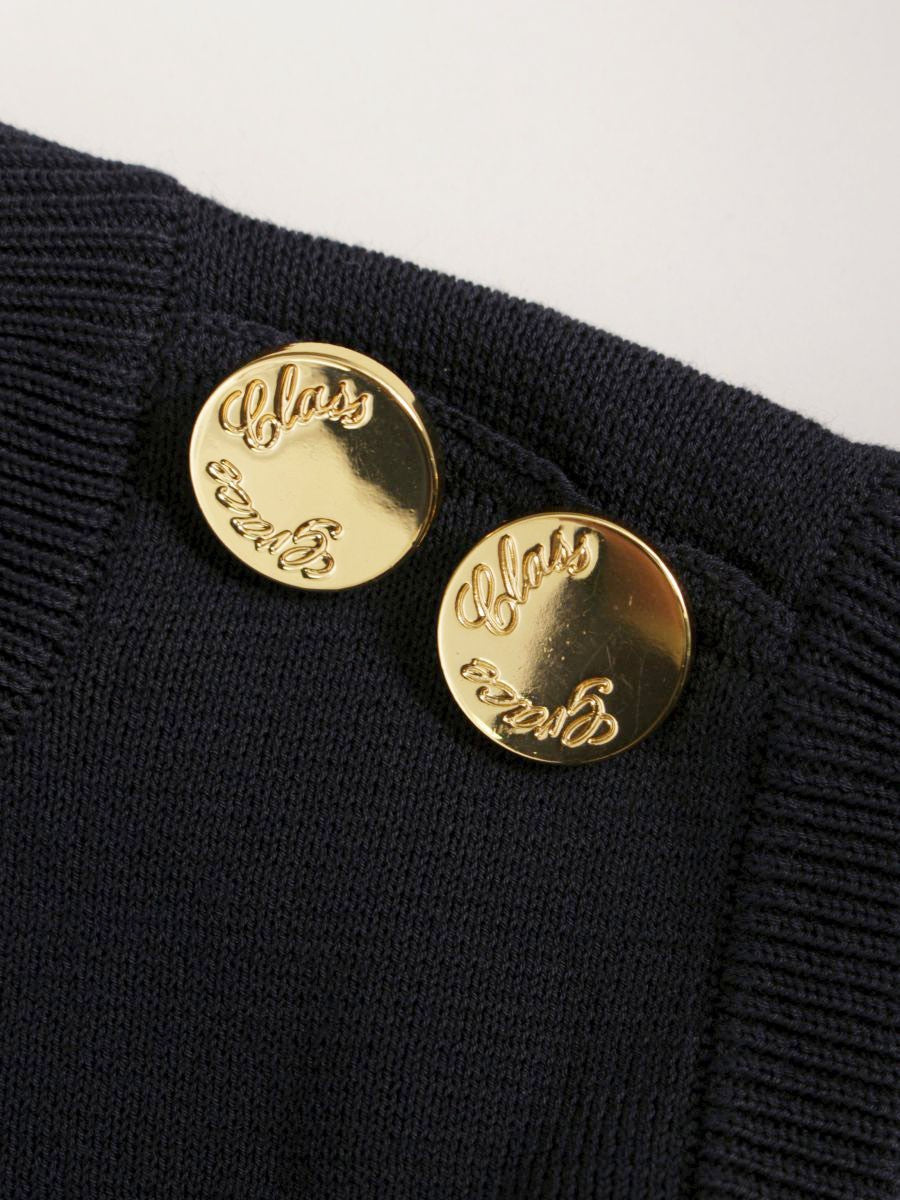 グレースクラス 02212 ワンピース 36 ネイビー/グリーン ニット ゴールドボタン ITDZHY2ZG7RT 【SALE】