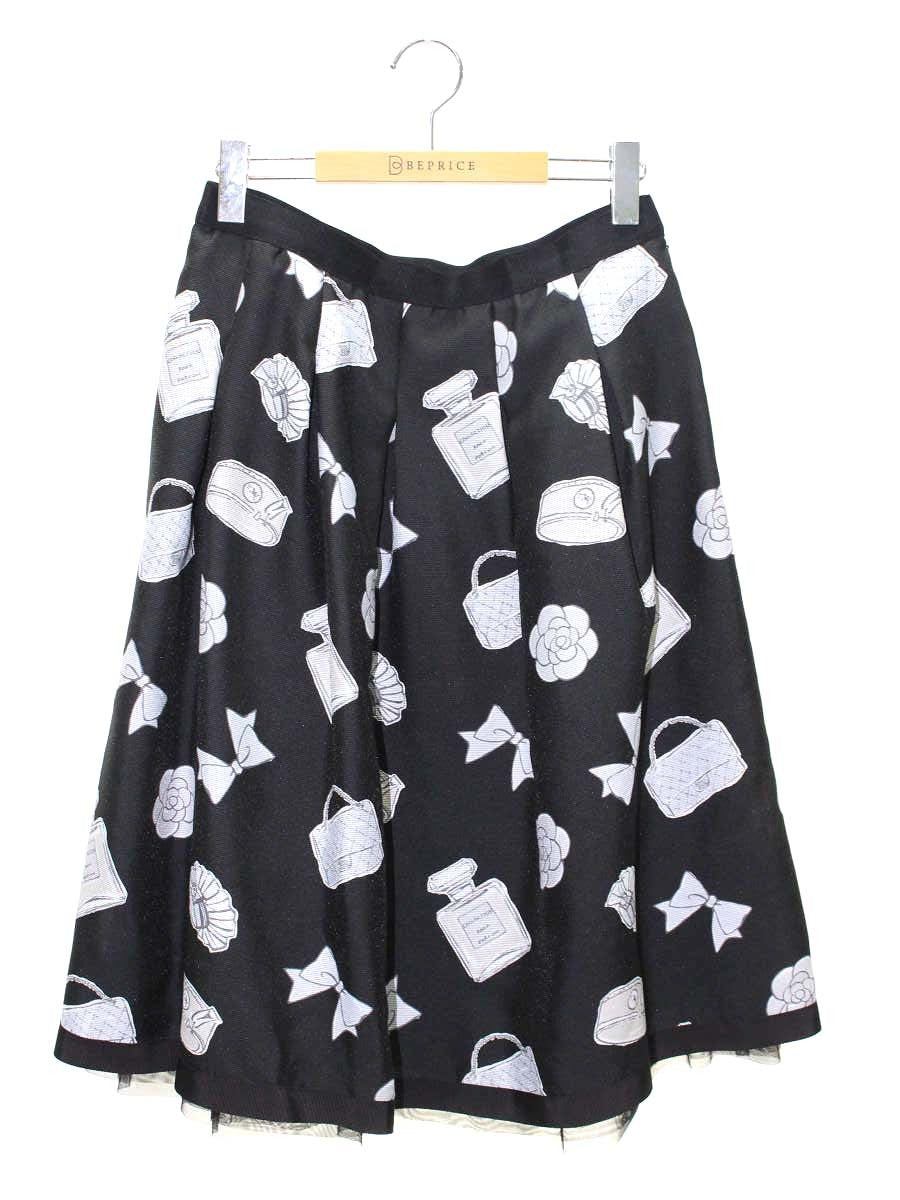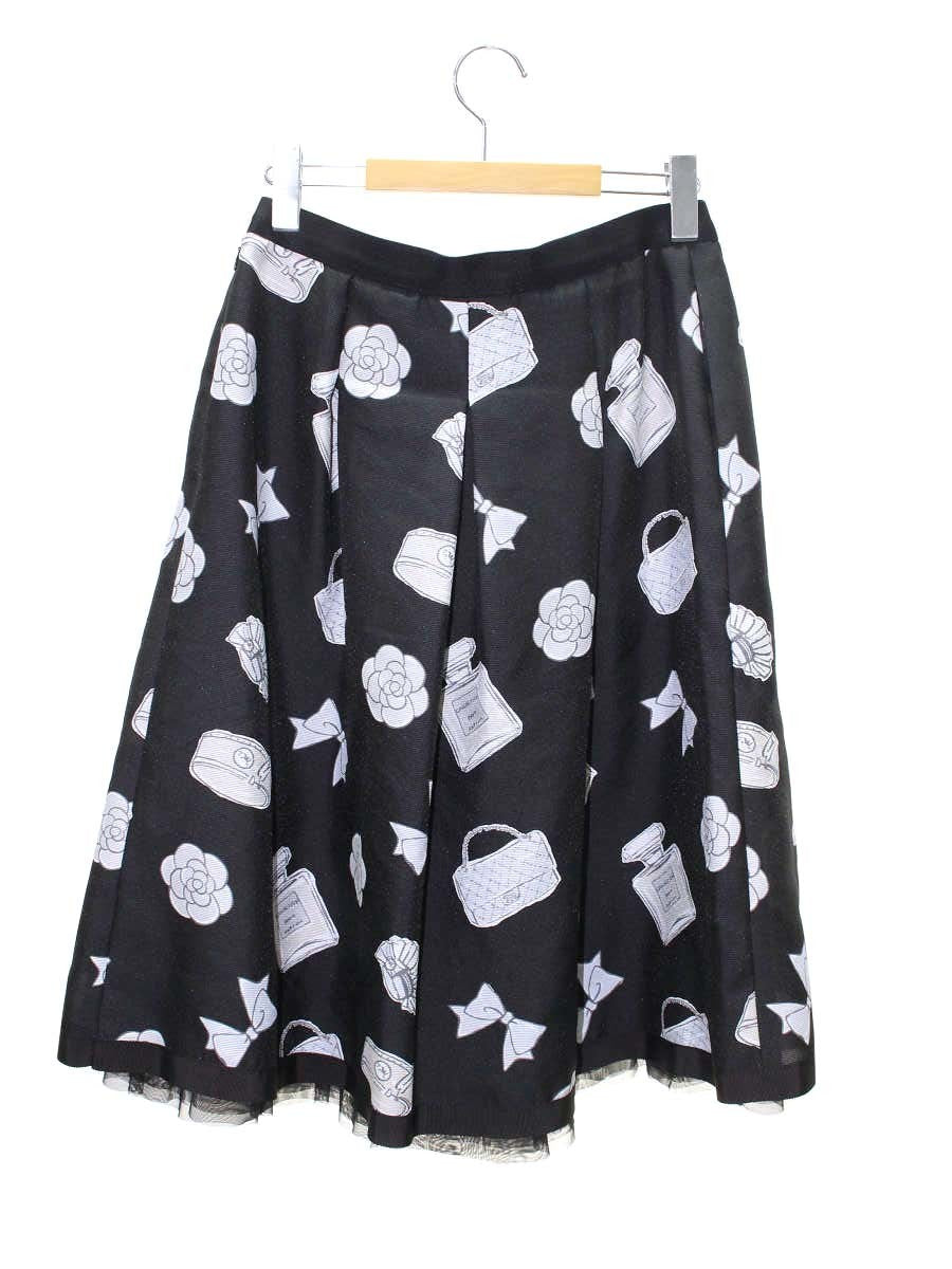 エムズグレイシー 117322 スカート 42 ブラック フラワーモチーフ ITECK5GPVE6O