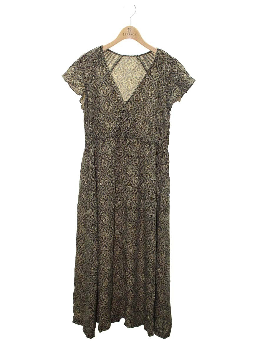 ソレイアード レーヨンプリント バタフライスリーブワンピース 75-06-32-06606 36 ブラック/イエローベージュ 23SS ITEFE6QRR7S0 【SALE】