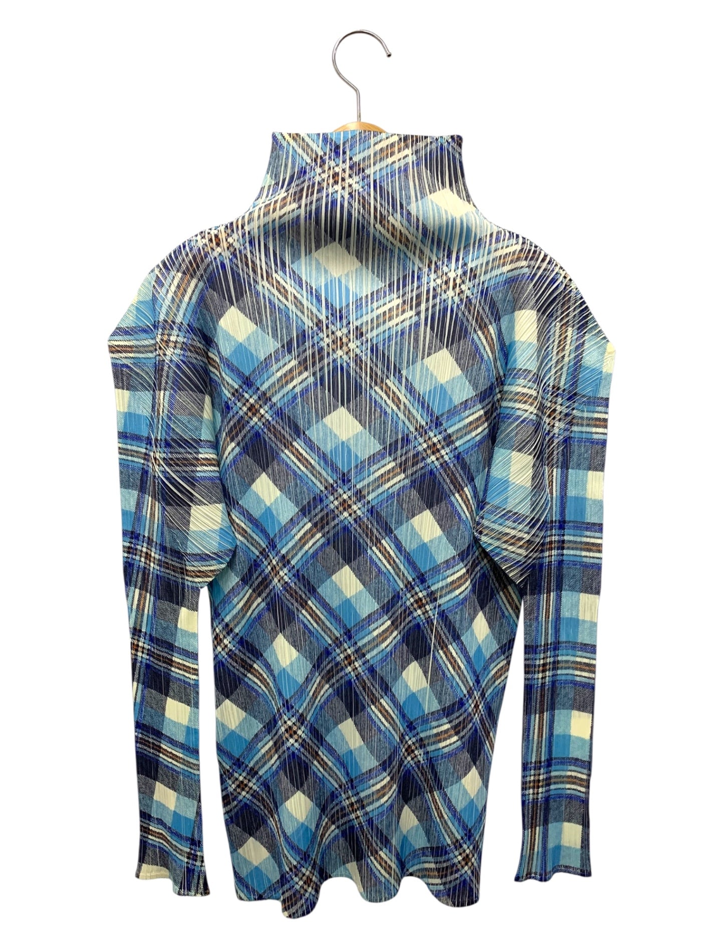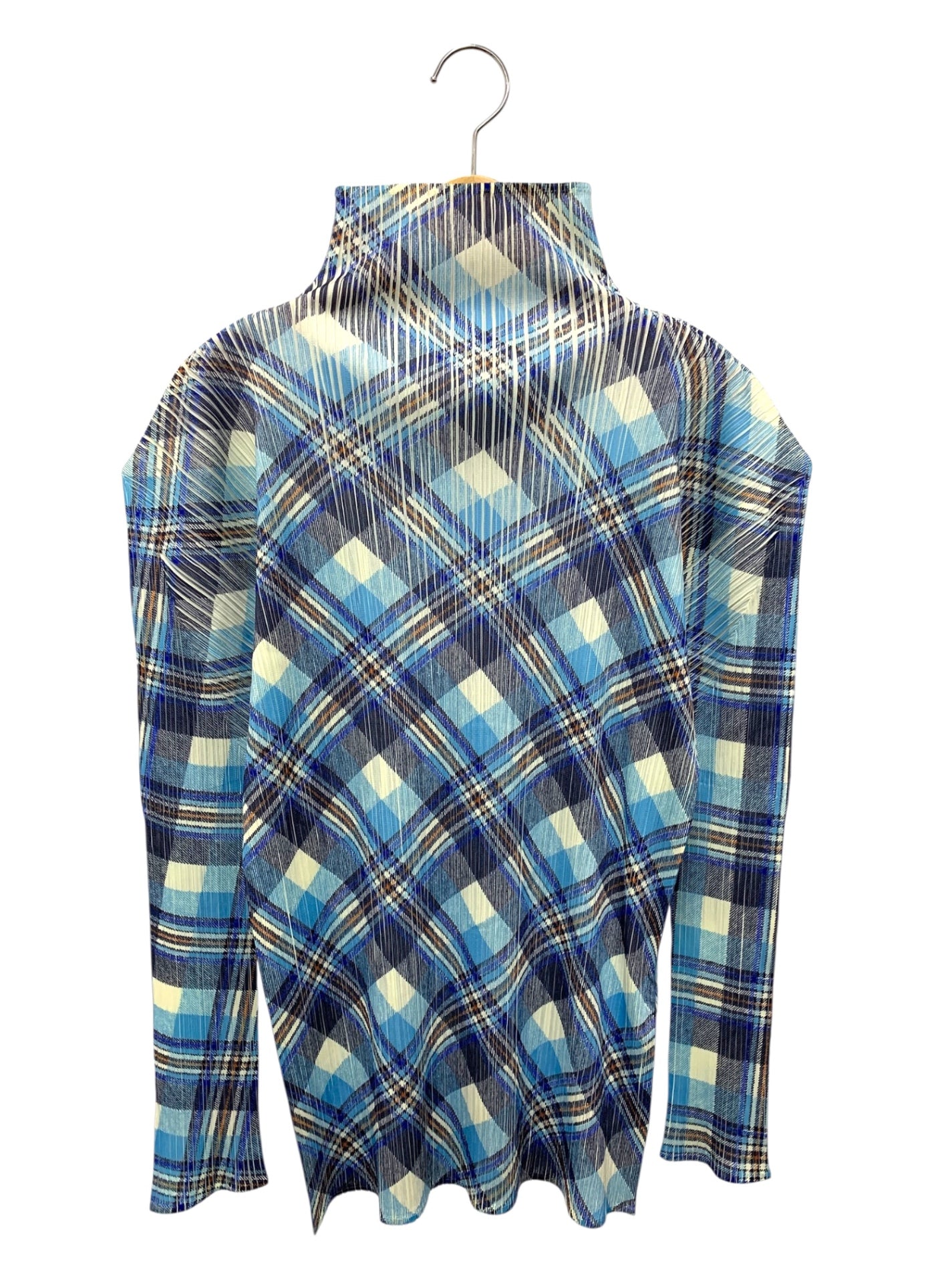 プリーツプリーズイッセイミヤケ PP52-JK604 カットソー 3 ブルー チェック柄 ボトルネック ITEGAFSJ3ETC