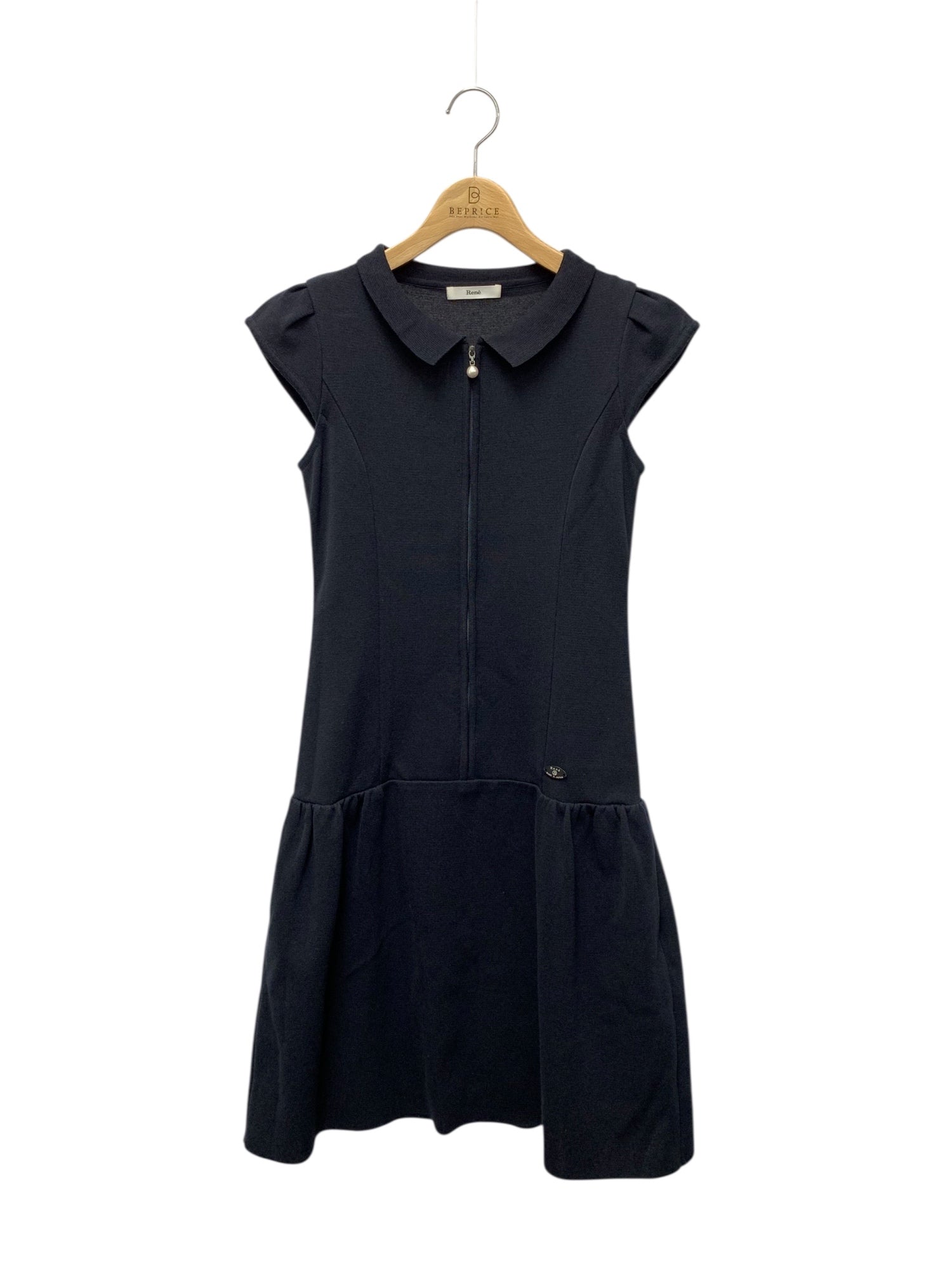 ルネ 6832160 ニットワンピース 34 ネイビー フロントジップ フェイクパール ITEGDLK3ESK4