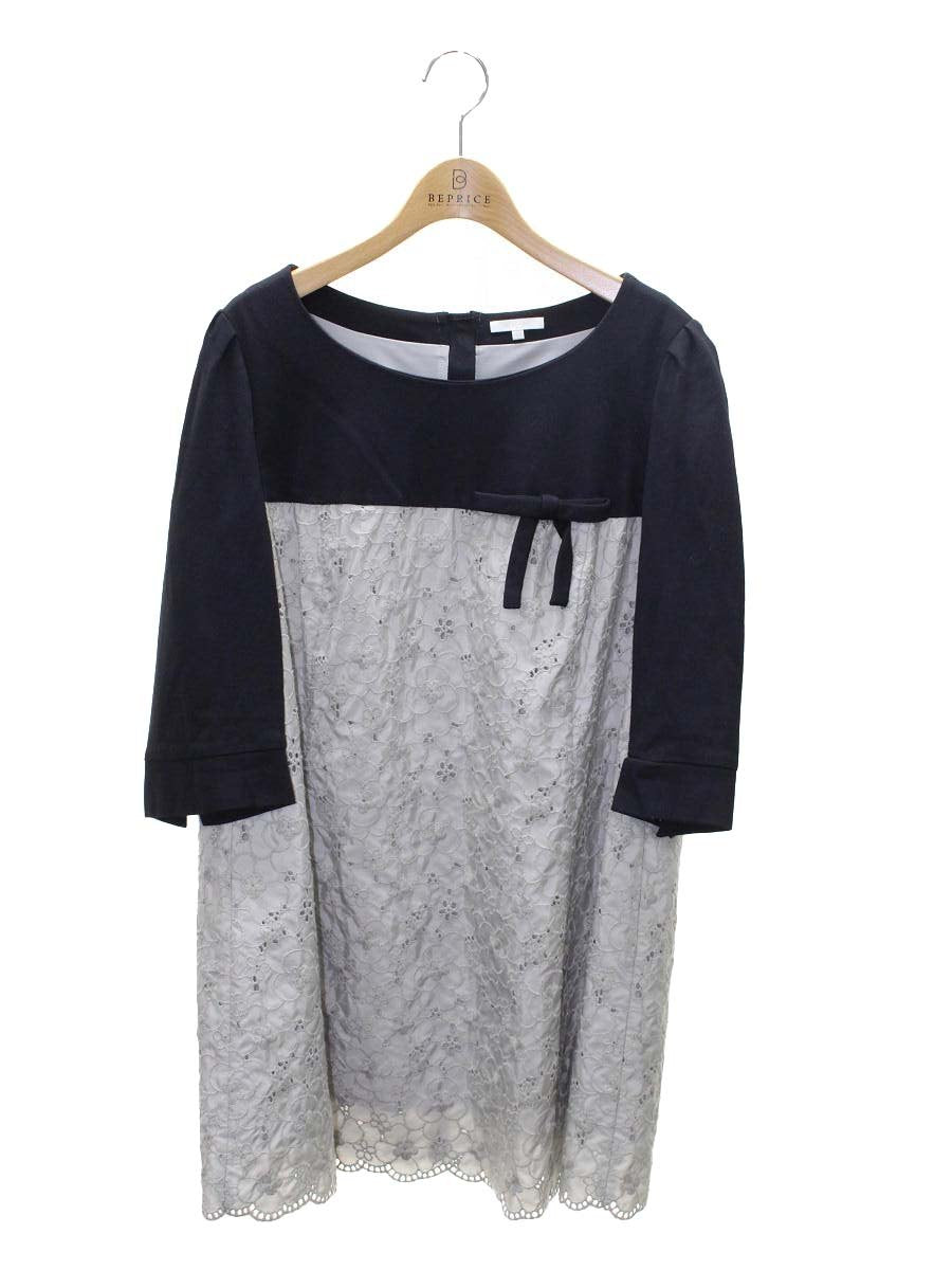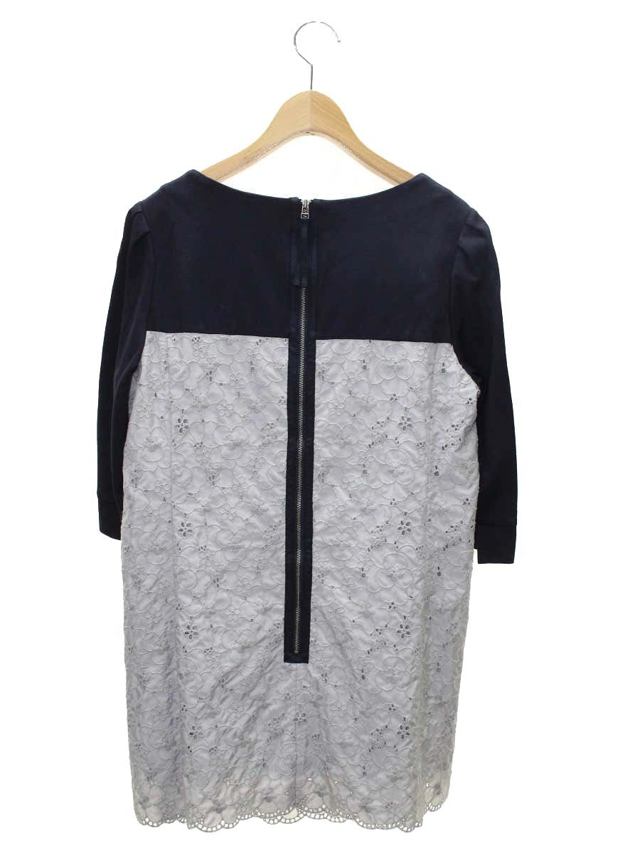 トゥービーシック W7M50-617-08 チュニック 44 ネイビー グレー 素材切替 刺繍 ITEI1GQNTTJQ