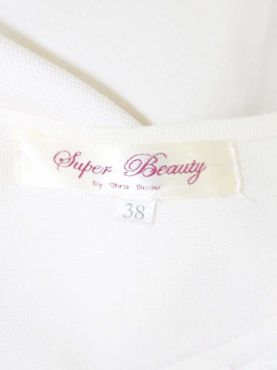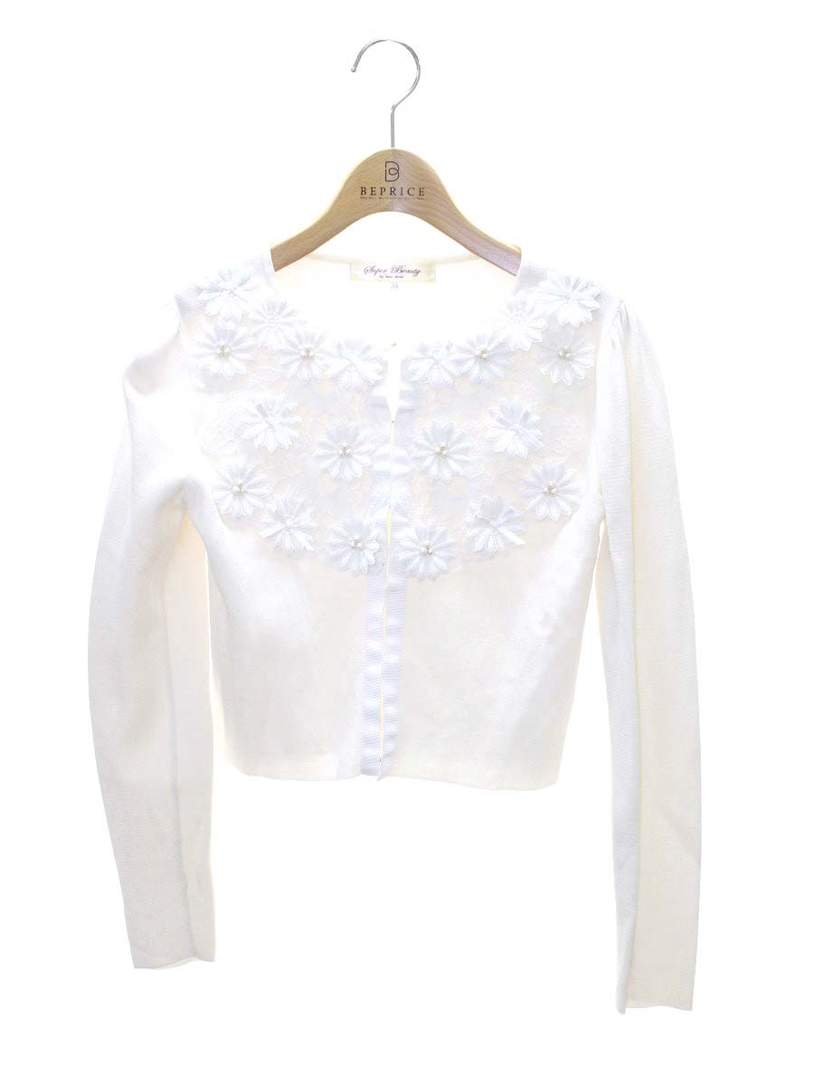 スーパービューティー カーディガン 38 ホワイト レース フラワーモチーフ パール ITEUMIQIETYW